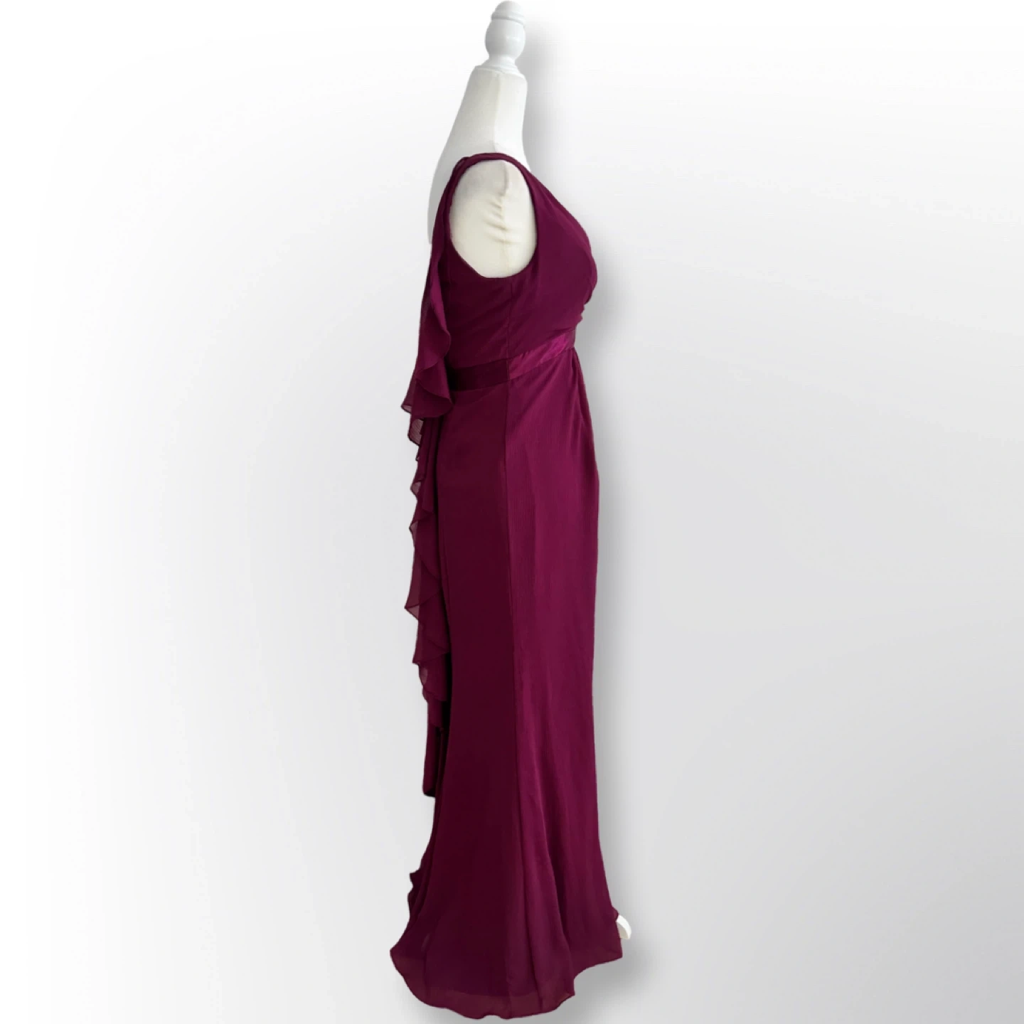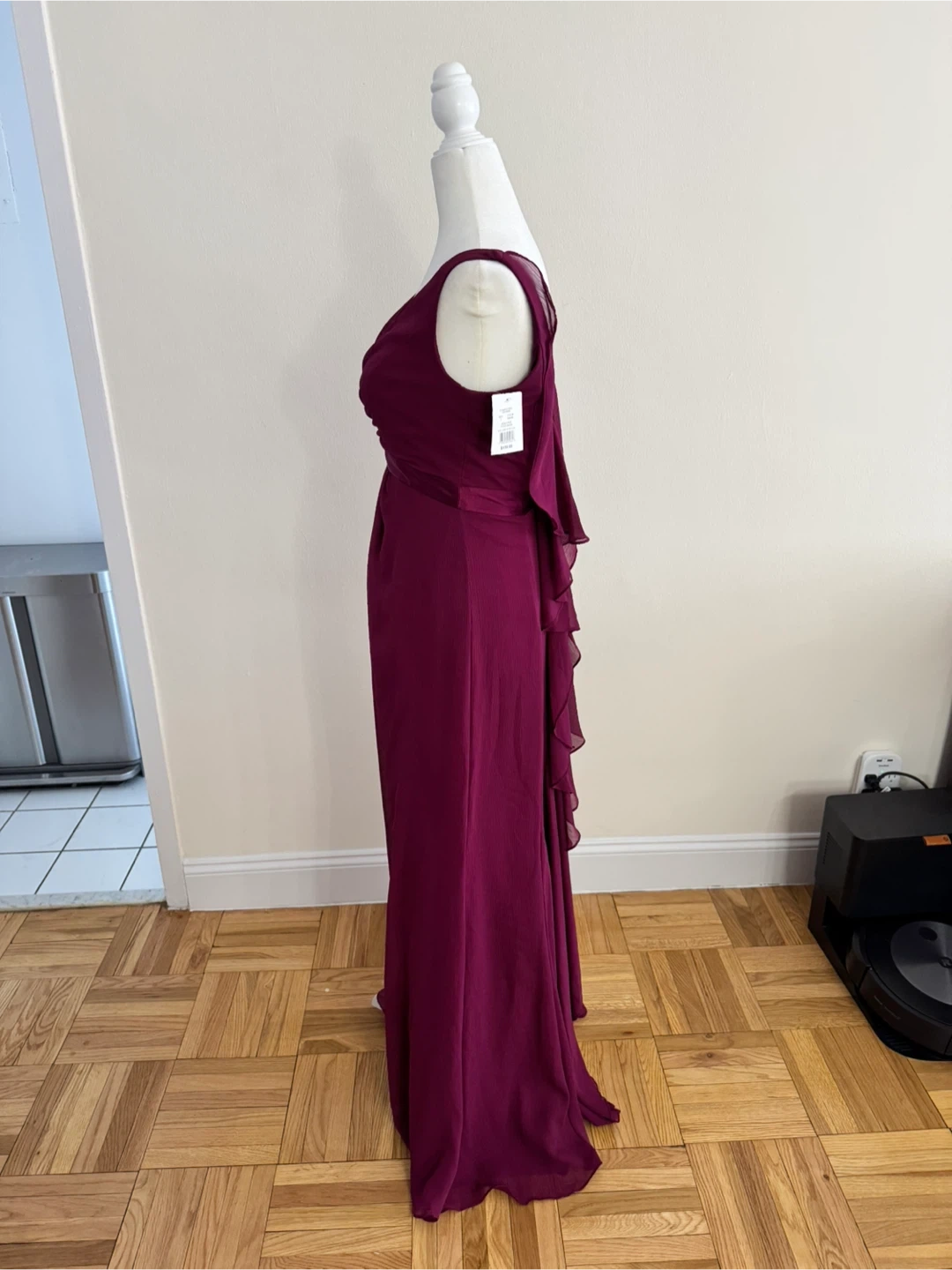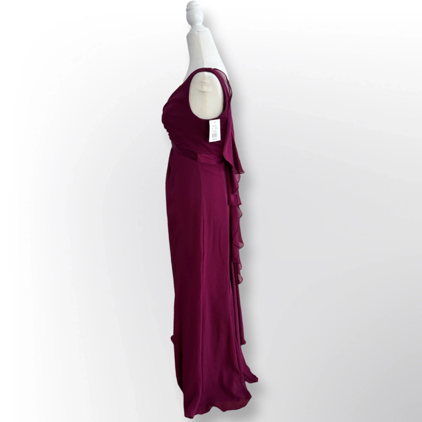 Size 2 and comes in a stunning sangria color. The dress features a chic ruffle back design. Originally bought for $159.95, it's in excellent condition and ready for your next special occasion.