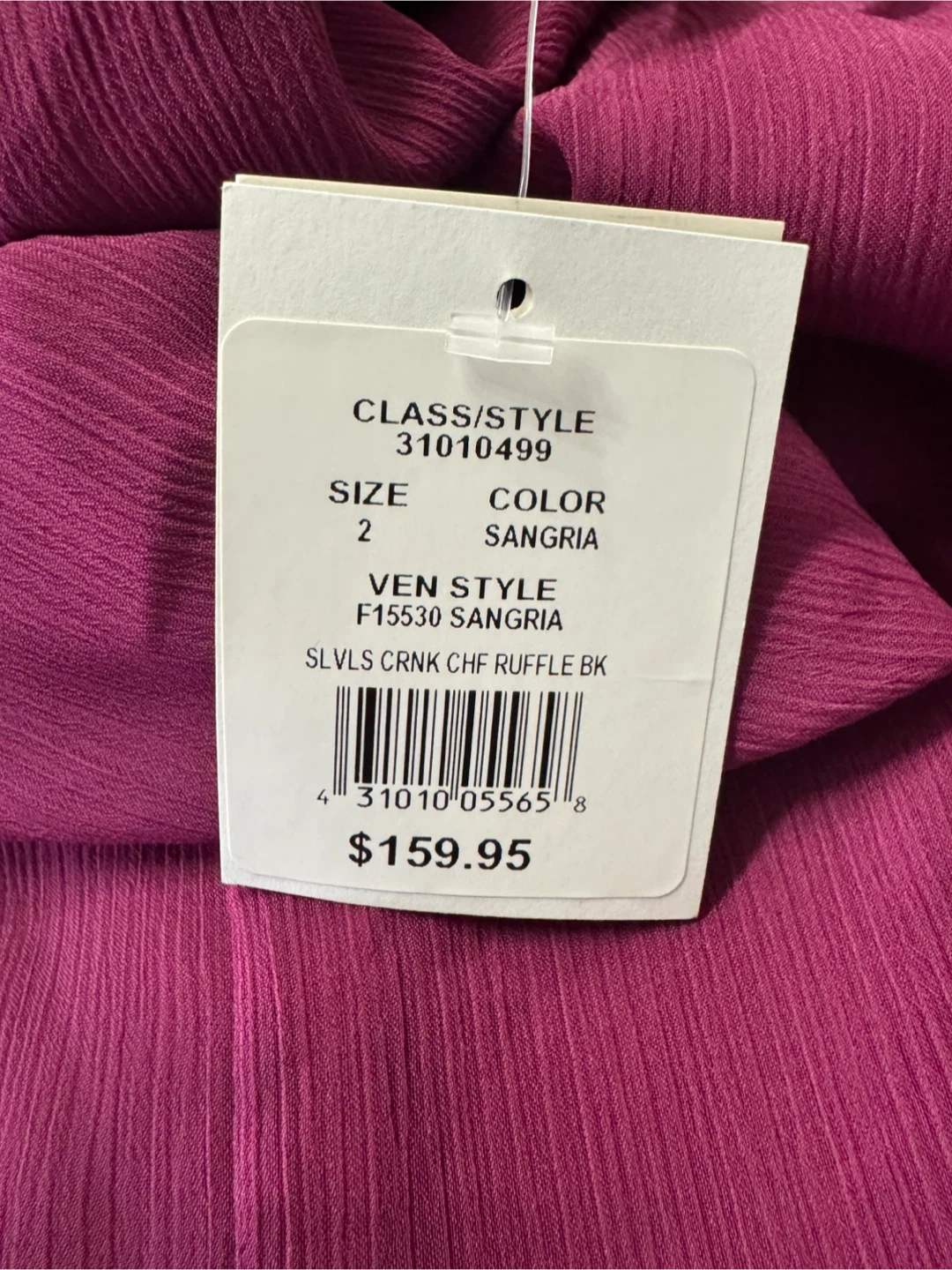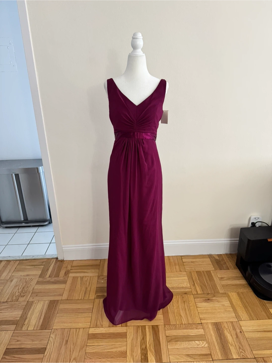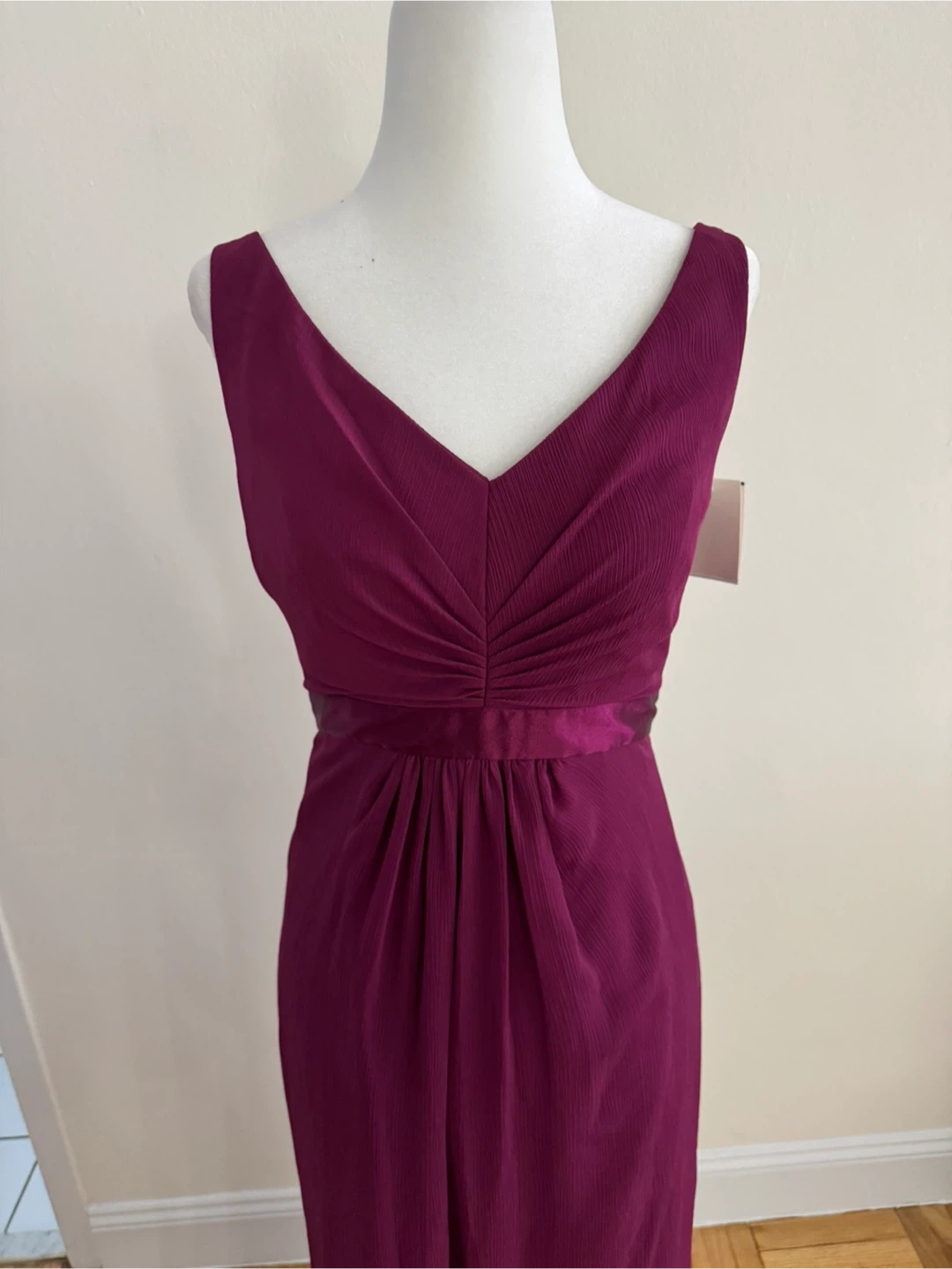 Size 2 and comes in a stunning sangria color. The dress features a chic ruffle back design. Originally bought for $159.95, it's in excellent condition and ready for your next special occasion.