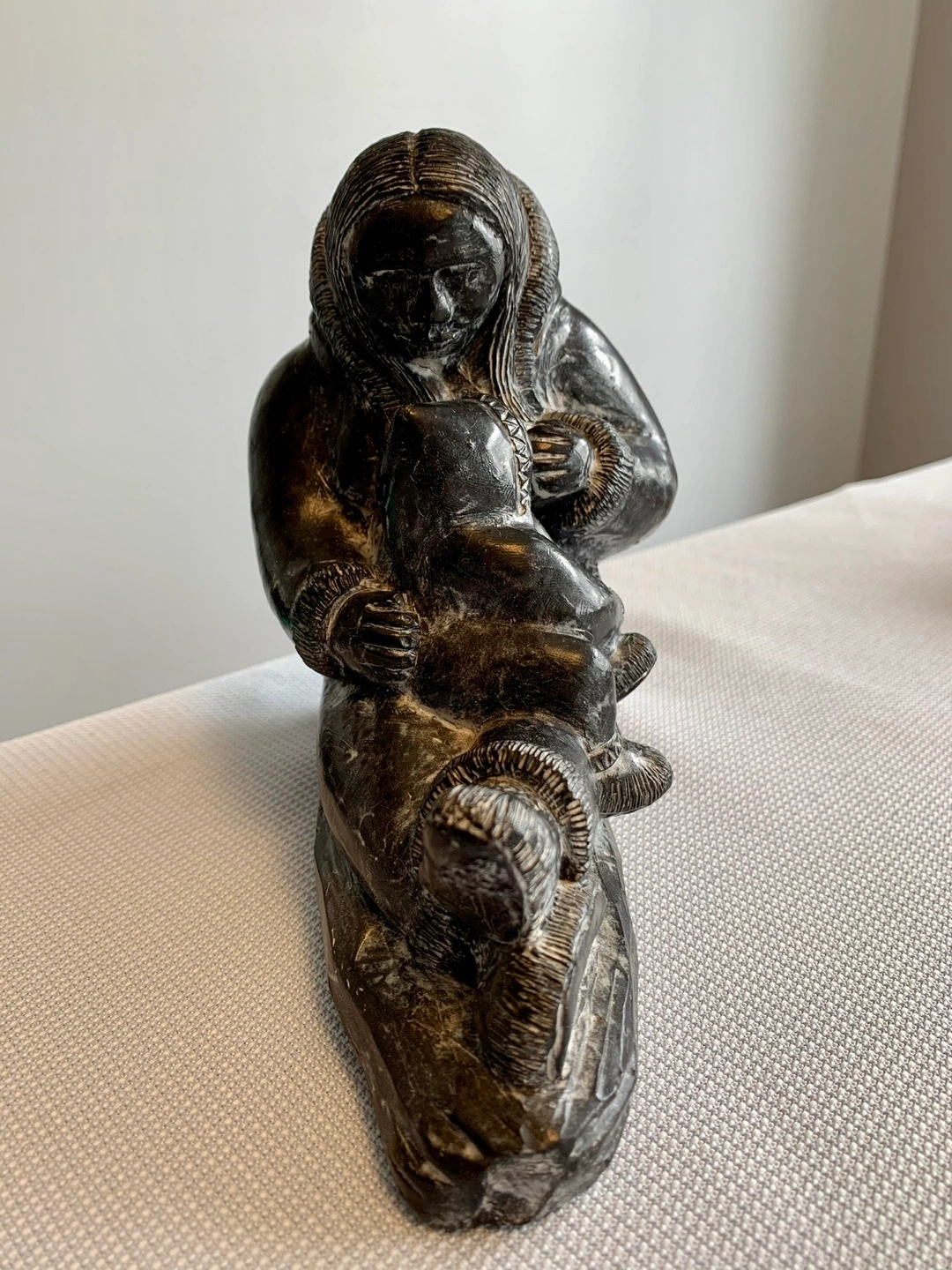 35This is a beautiful sculpture of an Inuit mother and child. It's a lovely piece that would look great in any home. It's in good condition and ready for a new home