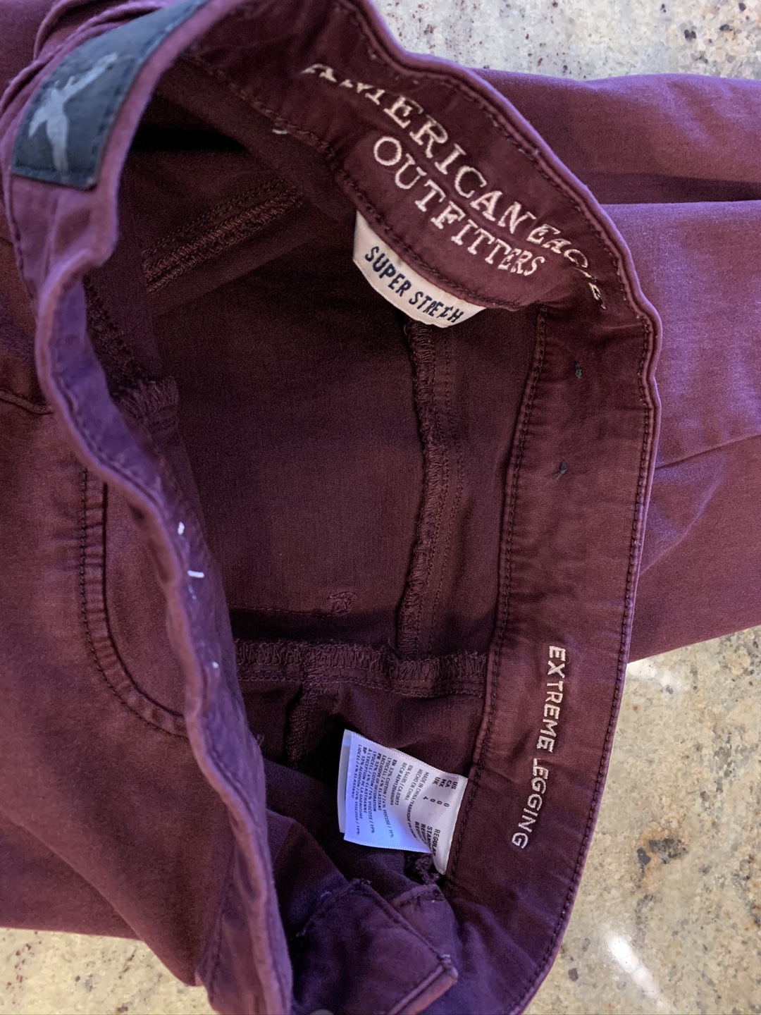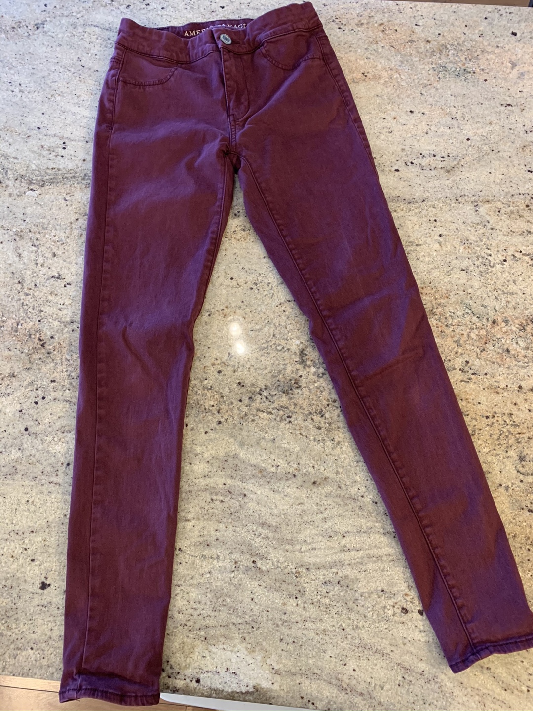 These are a pair of American Eagle Outfitters pants in a lovely burgundy colour. They are the 'Extreme Legging' style and are a size 2. They are in great condition and ready for a new home!