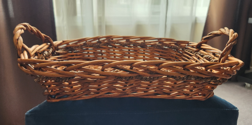 Selling a wicker basket with handles, perfect for storage, decoration, or making gift baskets! It's in great shape and ready for a new home