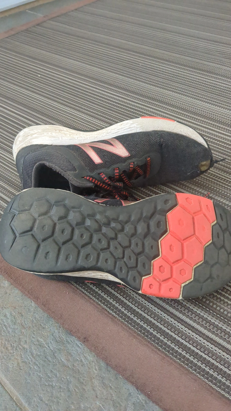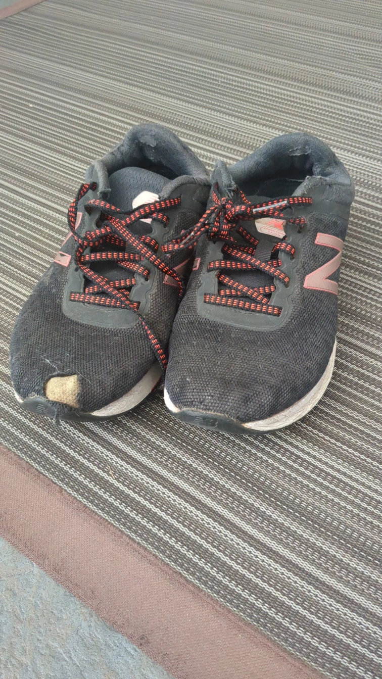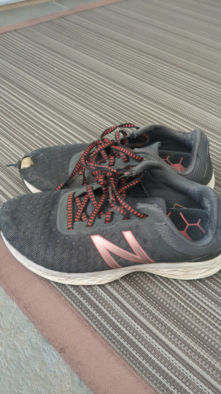 A free pair of New Balance running shoes. They show signs of wear and tear, as you can see in the photos. Still functional for casual use or as a project for restoration.