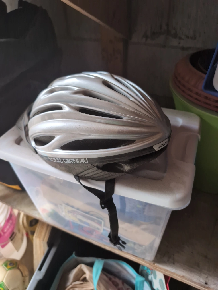Selling a Louis Garneau cycling helmet in silver. It's in great shape and ready for your next ride! Perfect for staying safe and stylish on the road or trails