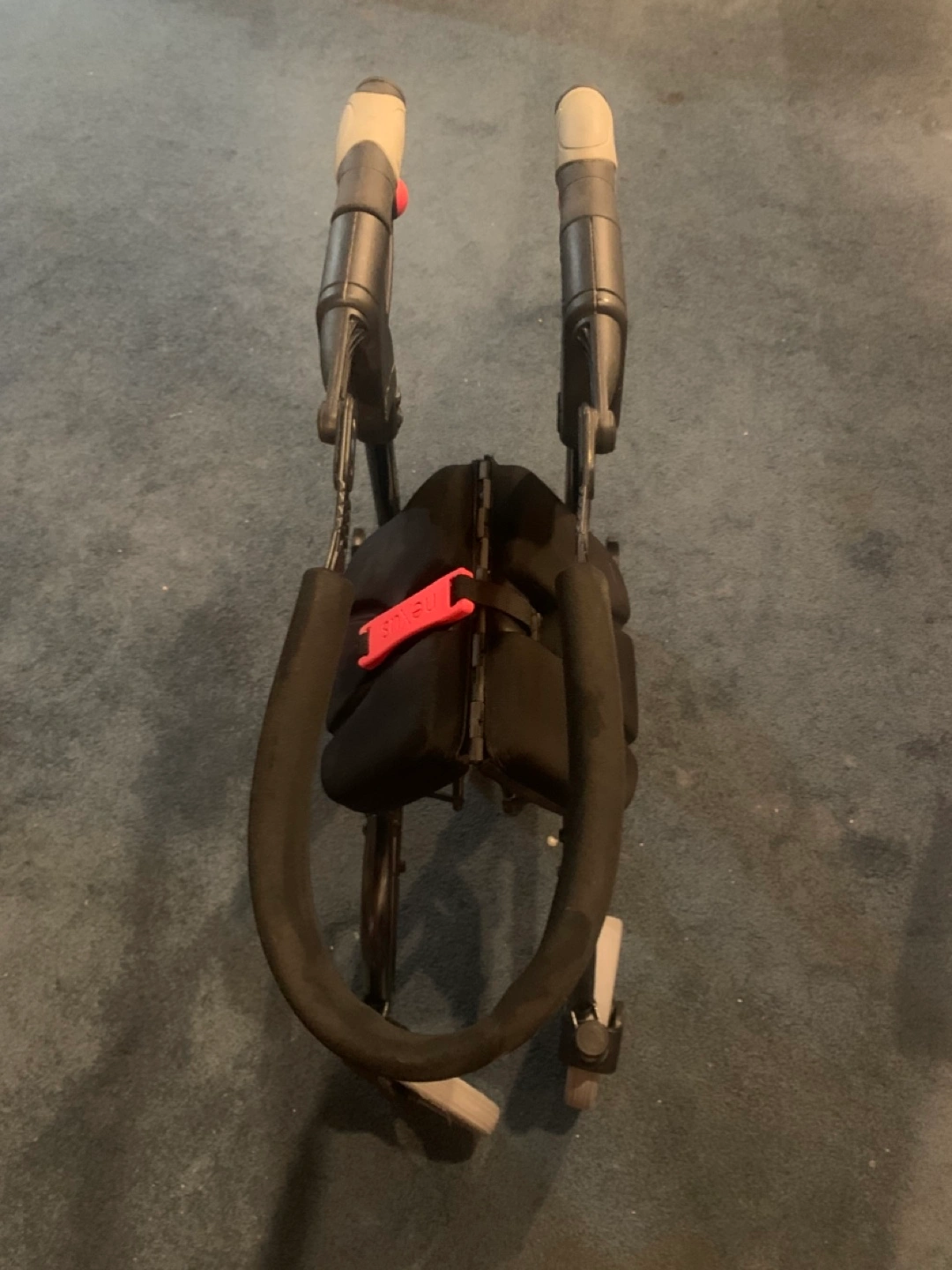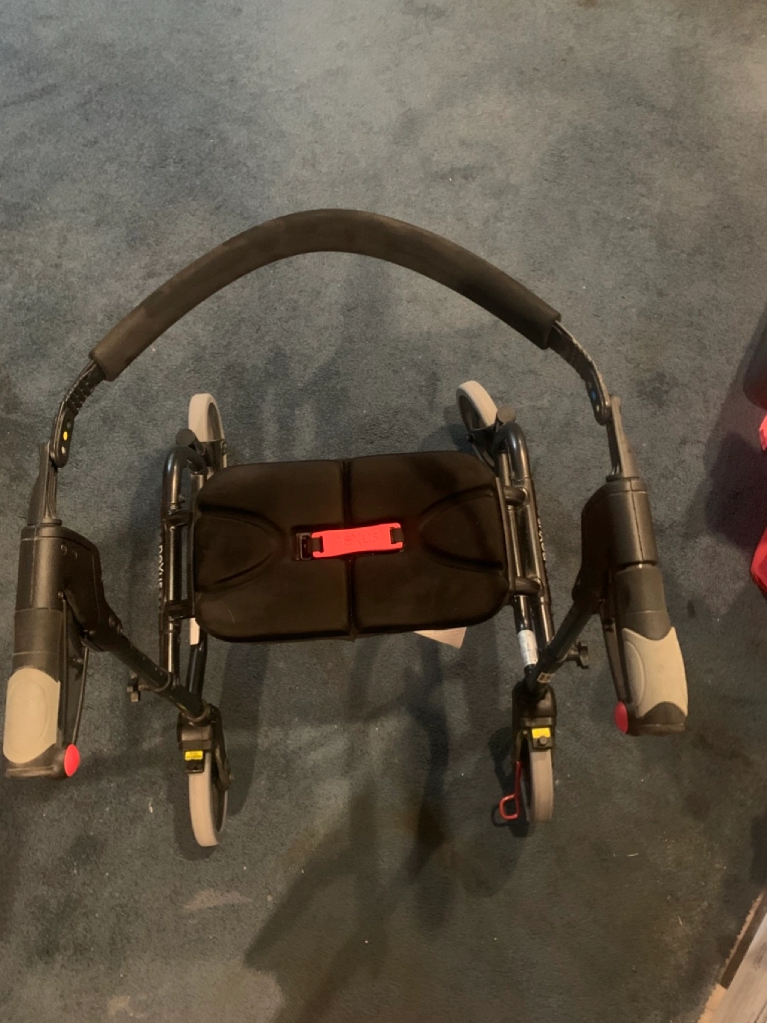 Nexus walker rollator in good condition! It features a unique folding design that allows it to stand independently when folded, making it easy to store and transport. The seat is padded for comfort, and the handles are adjustable to suit different heights. The frame is made of lightweight aluminum, ensuring durability and easy maneuverability