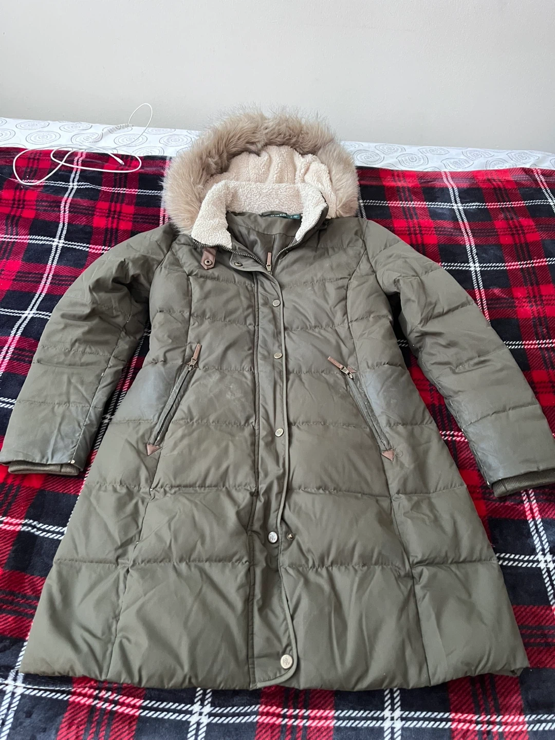 Women’s Ralph Lauren winter coat in olive green! It has a fur-lined hood to keep you warm during the colder months. It's in great condition and ready for a new home