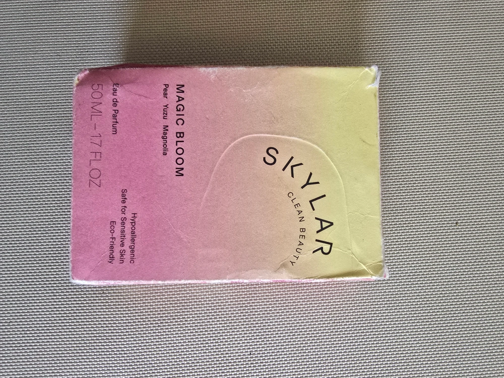 Selling a bottle of Skylar Magic Bloom Eau de Parfum. This is a 50mL bottle with a bright, juicy, and tart scent. It's hypoallergenic, safe for sensitive skin, and eco-friendly! The fragrance notes include pear, yuzu, and magnolia