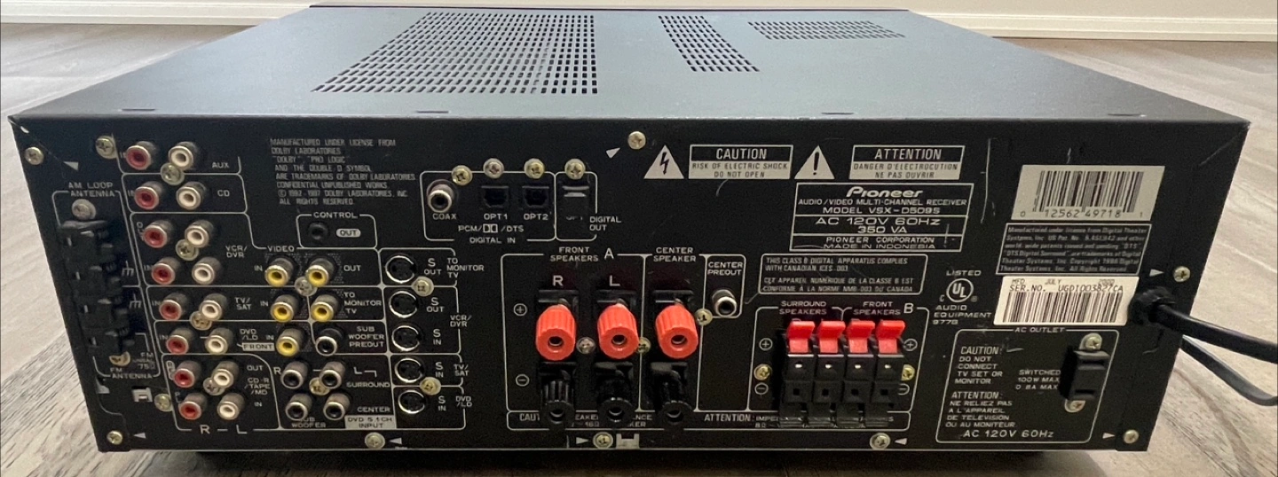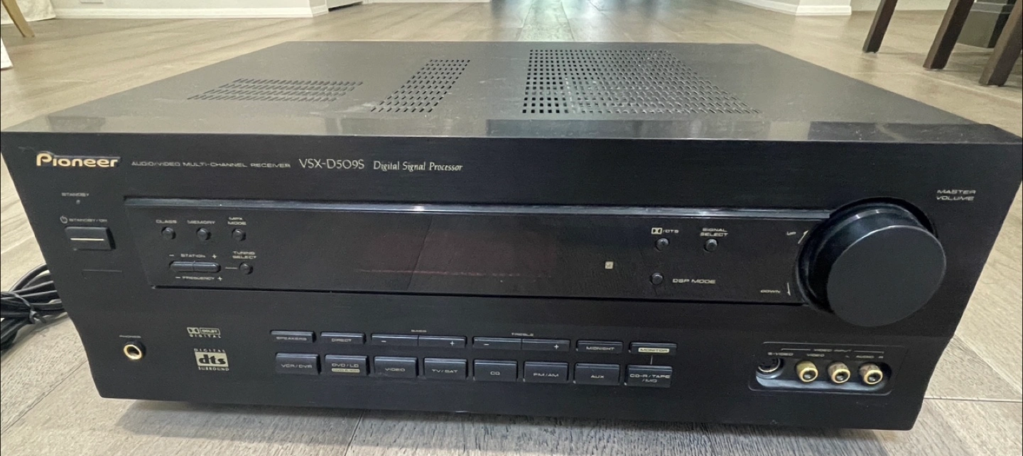 Selling a Pioneer VSX-D509S Audio/Video Multi-Channel Receiver! It's in good condition and ready to enhance your home entertainment setup. Comes with a remote control for easy operation. Perfect for anyone looking for quality sound and versatile connectivity