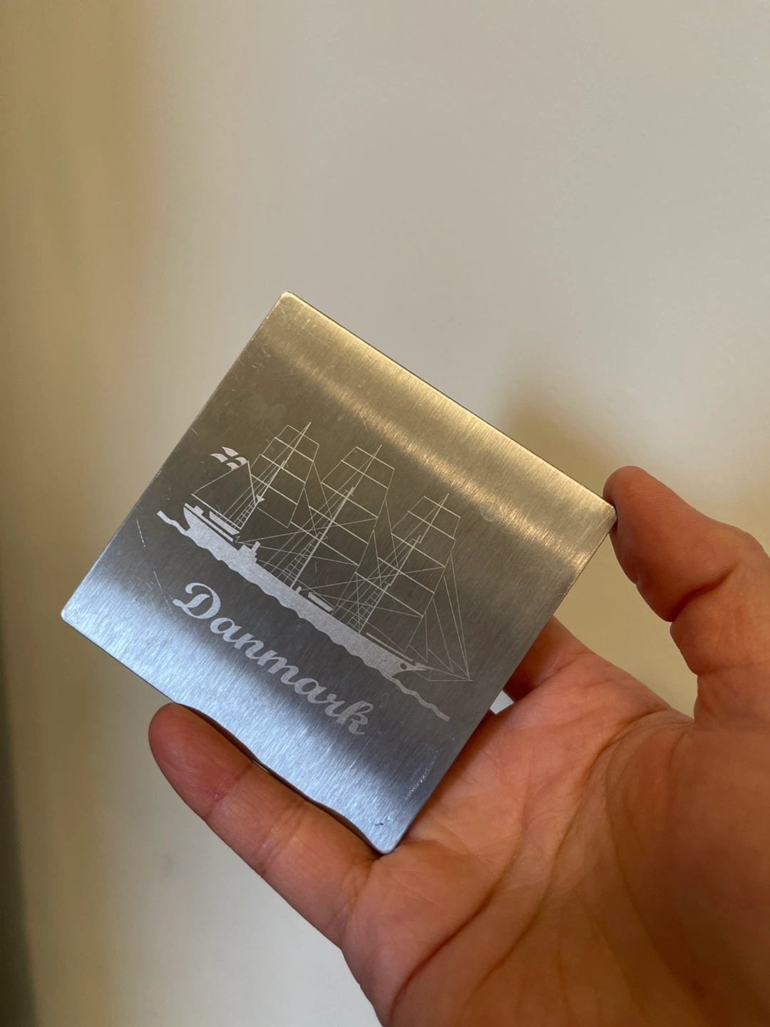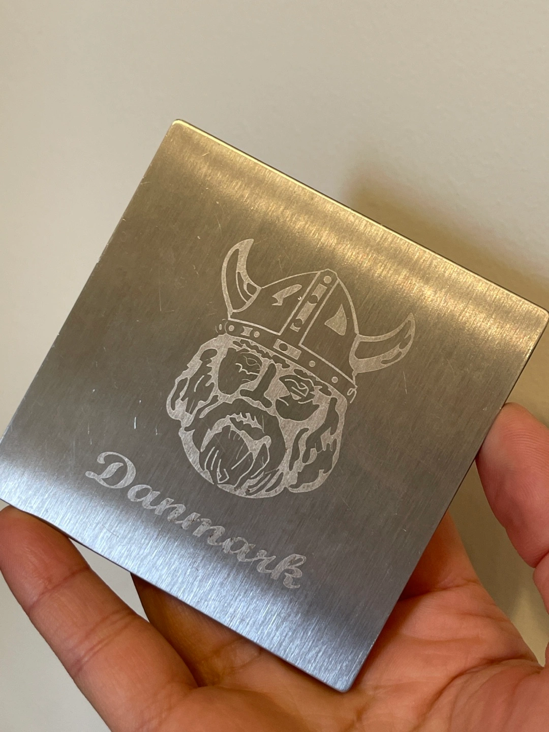 Selling a set of coasters with a Viking and ship design, labelled 'Danmark'. Perfect for adding a touch of Danish charm to your home!