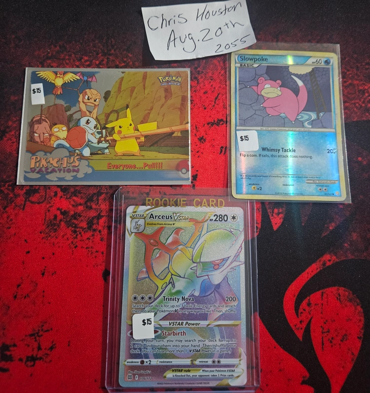 Pokemon Cards from many different series ☆Most Cards are VLP-M played ☆Price on Cards ☆Shipping; (untracked buyers risk) ✉️ PWE: $3. (max 4/5 cards) ➡️Bubble mail: $5. (1-8 Cards) Tracked: $17. (Box/Bubble/insured) ⭐⭐⭐⭐⭐Marketplace Seller