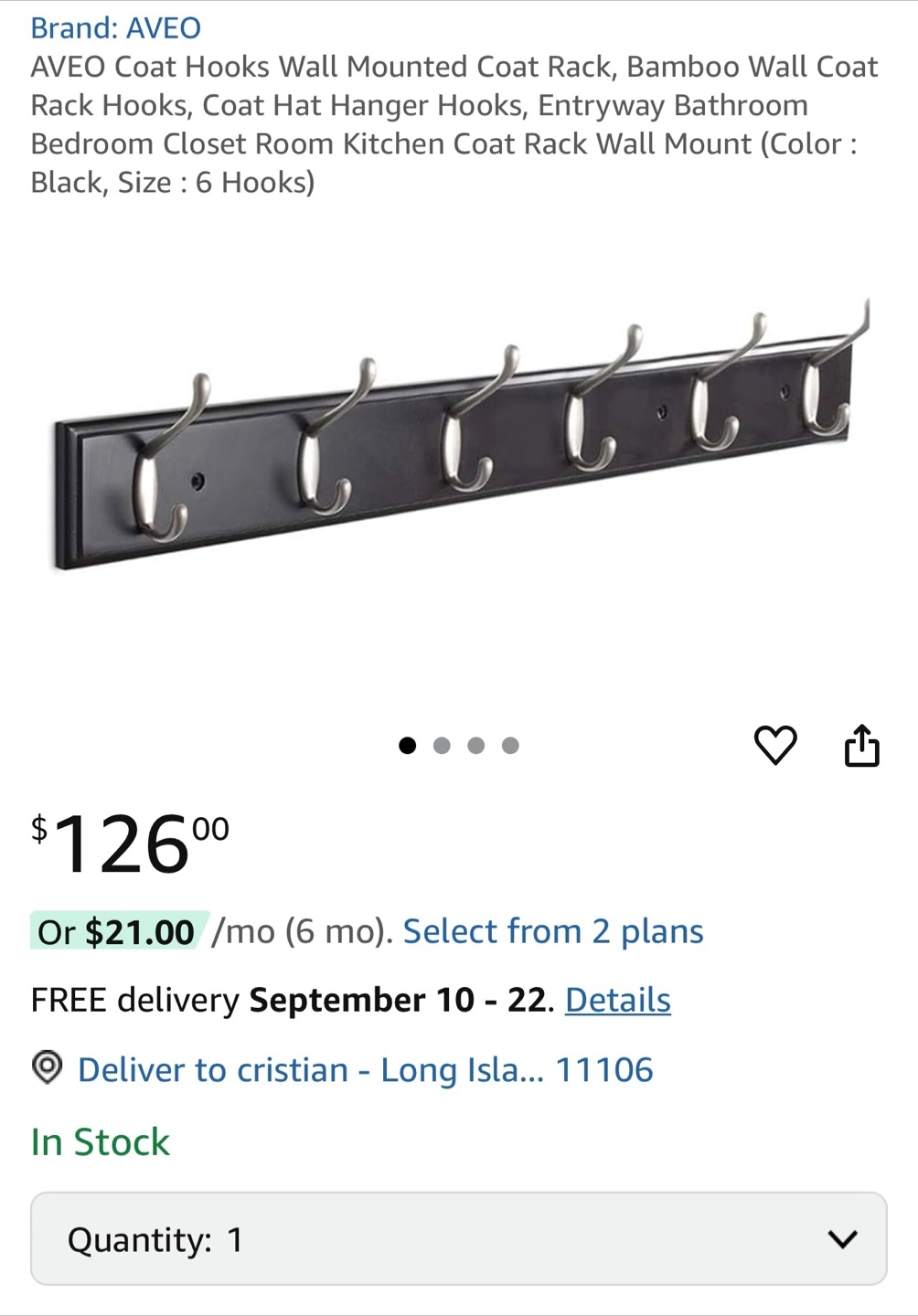 Selling a gently used AVEO coat rack. It's a wall-mounted coat rack with 6 hooks, perfect for an entryway, bathroom, bedroom, or closet. The rack is black and in great condition. Retails for $126 I am selling for 50% off