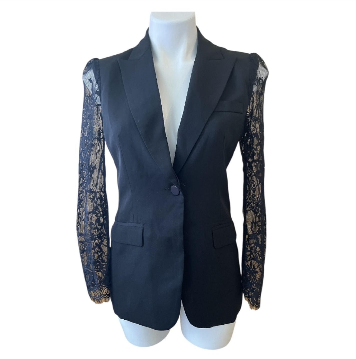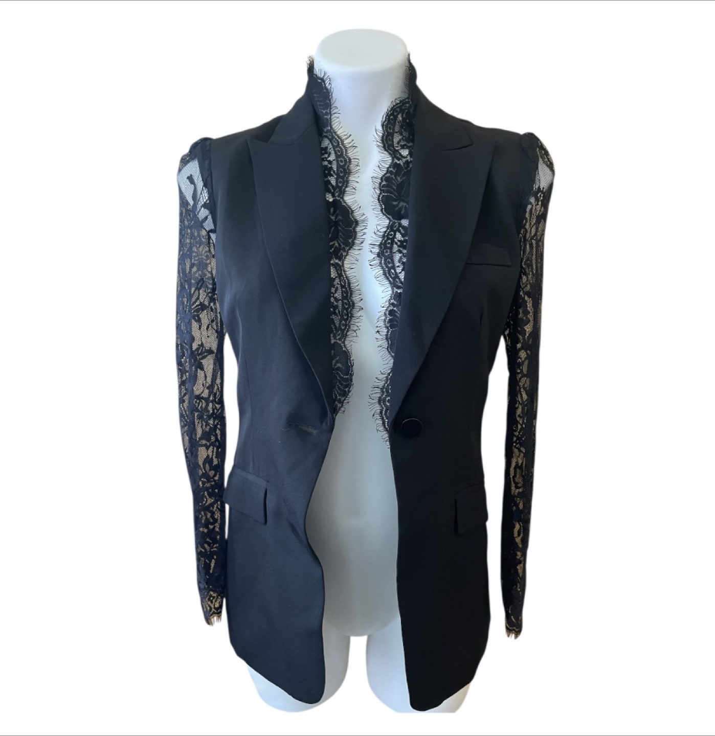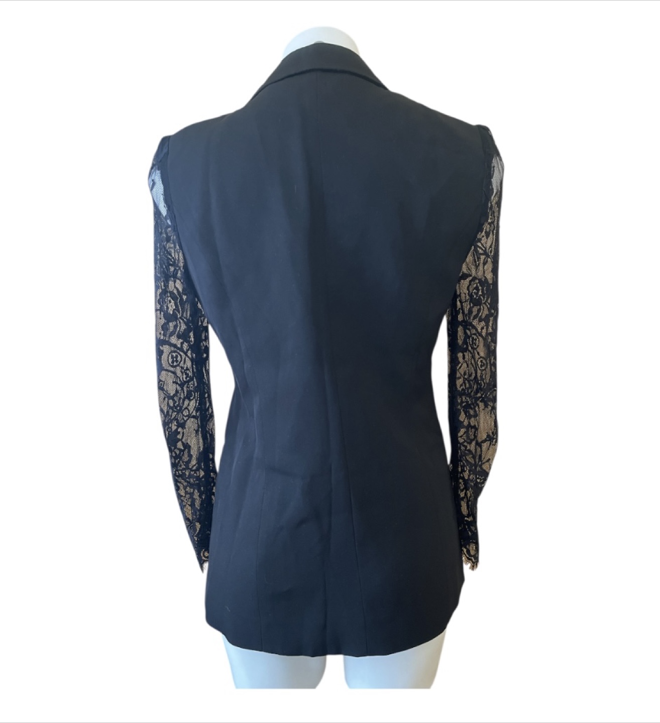 NWT Modern Black Lace Sleeve Blazer & Optional Lace Collar Detailing Button Closure S/M