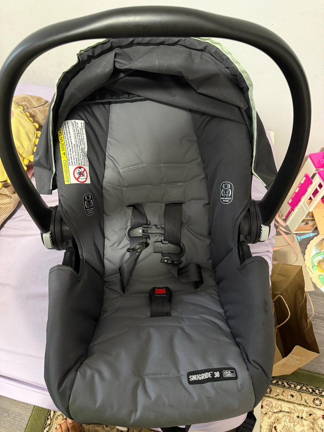 Selling a Graco SnugRide 30 Click Connect infant car seat. It's in great condition and ready for a new little one! The SnugRide 30 is designed to protect babies rear-facing from 4-30 lbs and up to 30 inches, making it an excellent choice for your baby's first car seat