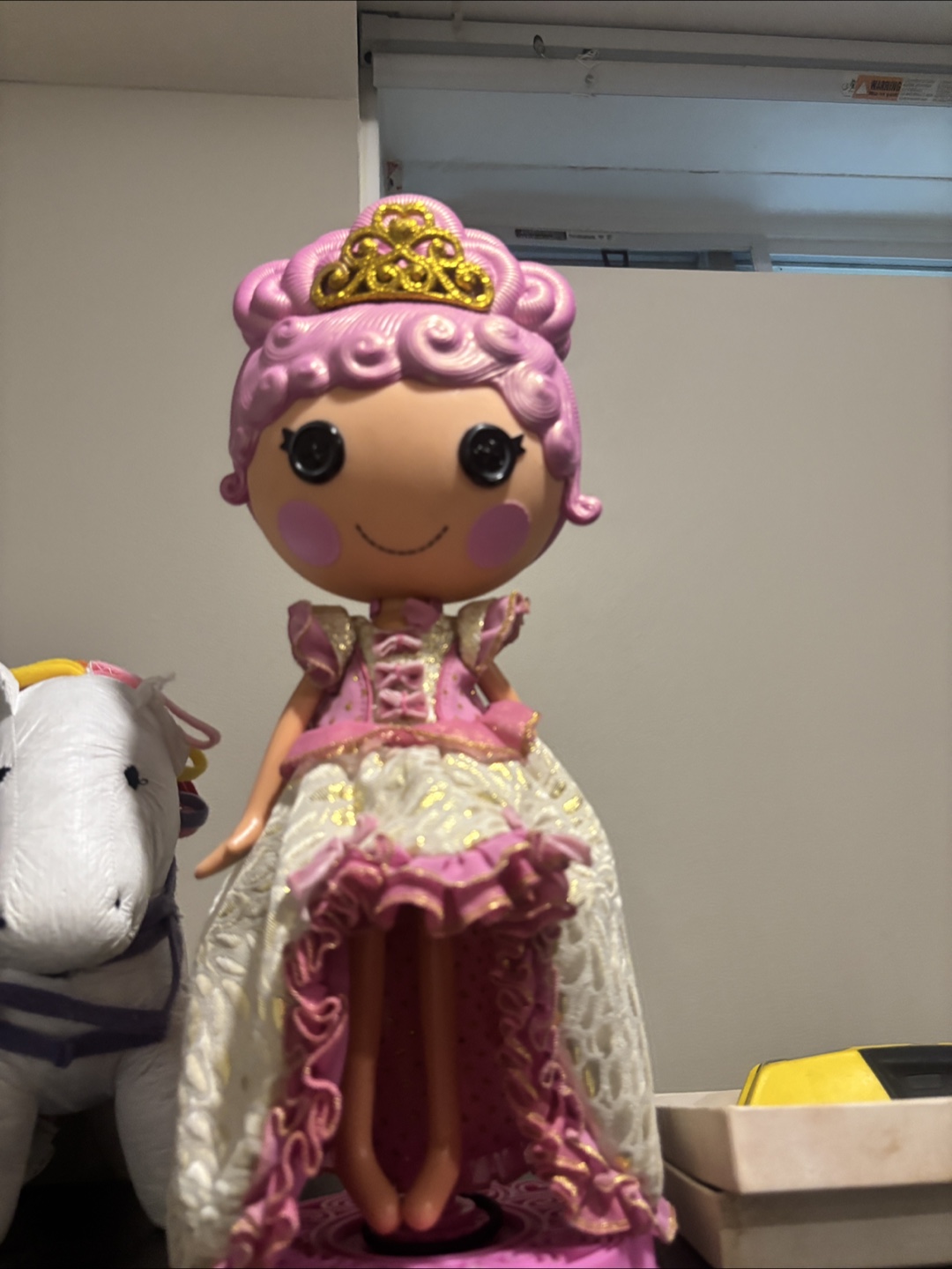 Selling a Lalaloopsy princess doll! She's in great condition and ready for a new home. This doll features a beautiful pink and white dress with gold accents and a golden crown. She's a charming addition to any Lalaloopsy collection!