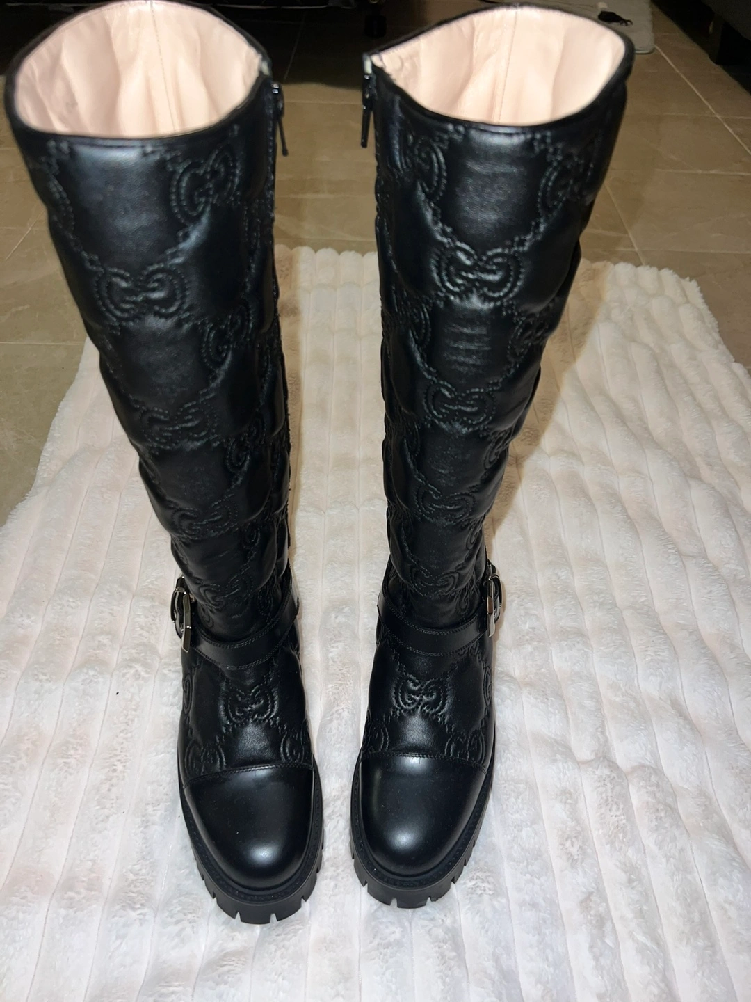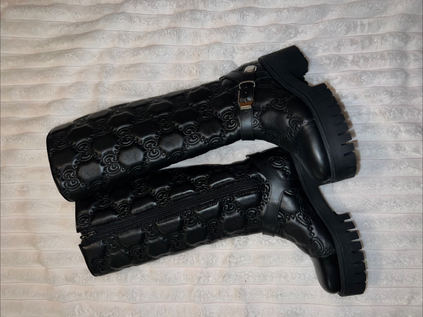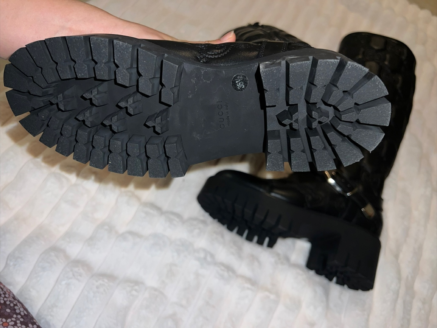 Selling a pair of Gucci black leather boots. They're in great shape and have a cool, chunky sole. Perfect for adding a bit of edge to your outfit!