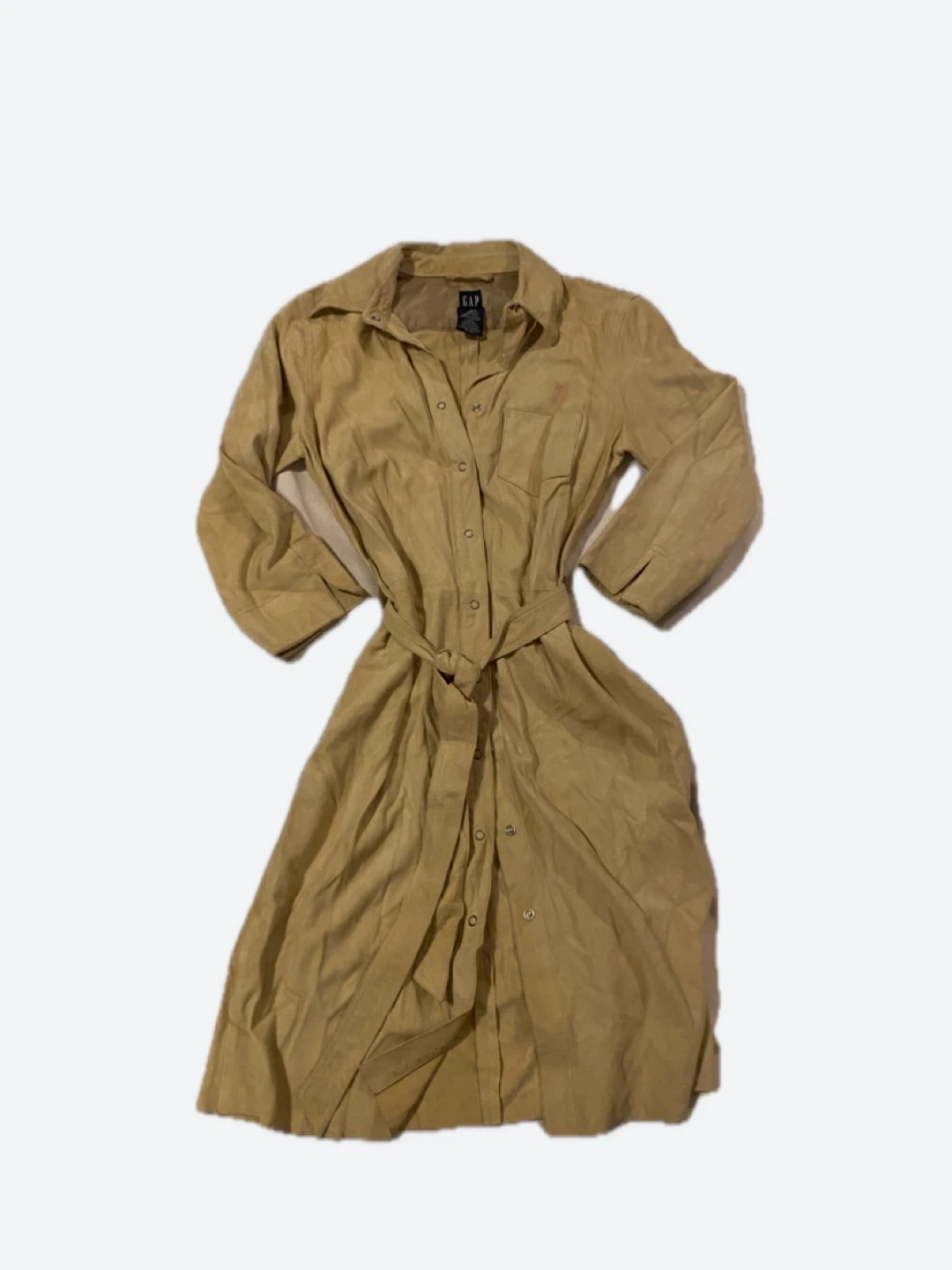 Selling a lovely vintage Y2K GAP suede shirt dress in a size 6. It's a beautiful neutral colour and made of 100% suede. There is a small stain on the front as pictured. It can be removed with professional product.