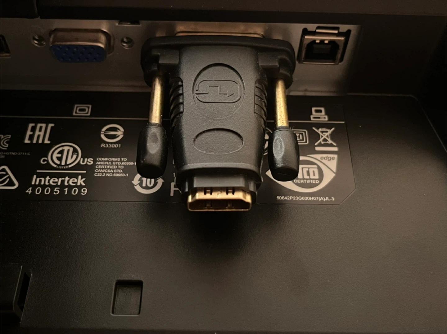 HP EliteDisplay 23.5” Monitor with HDMI adapter
