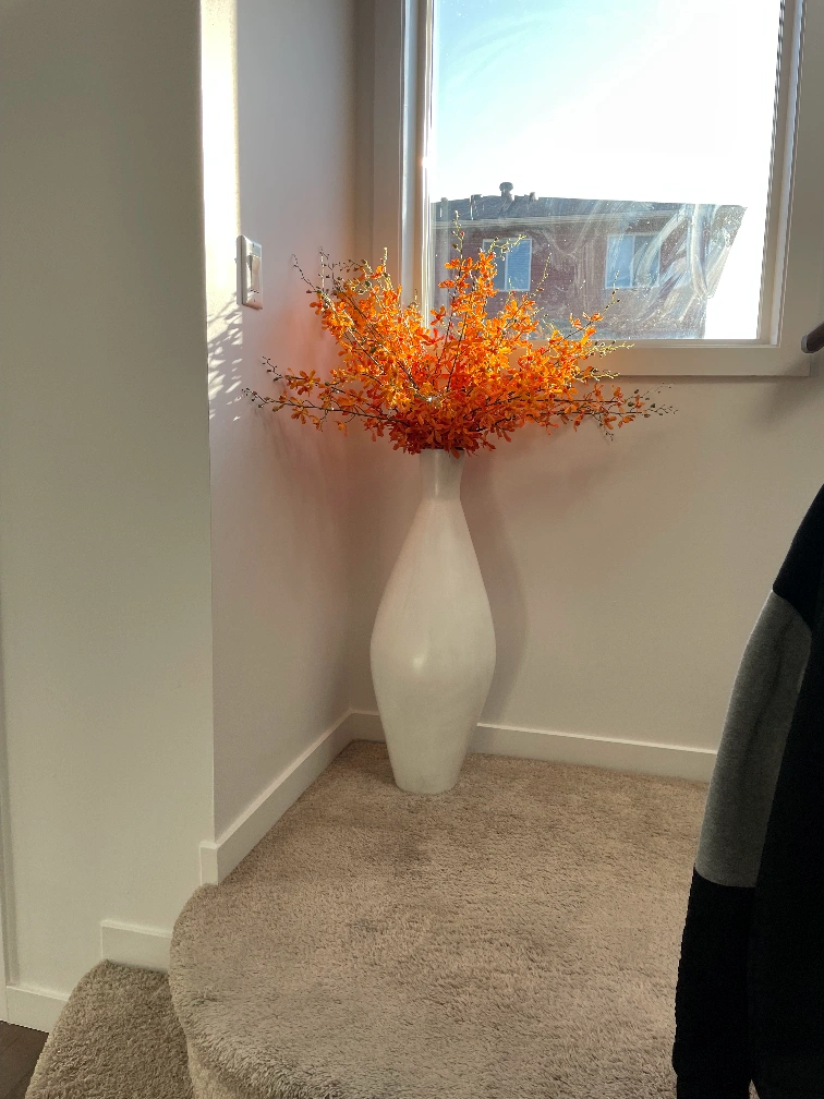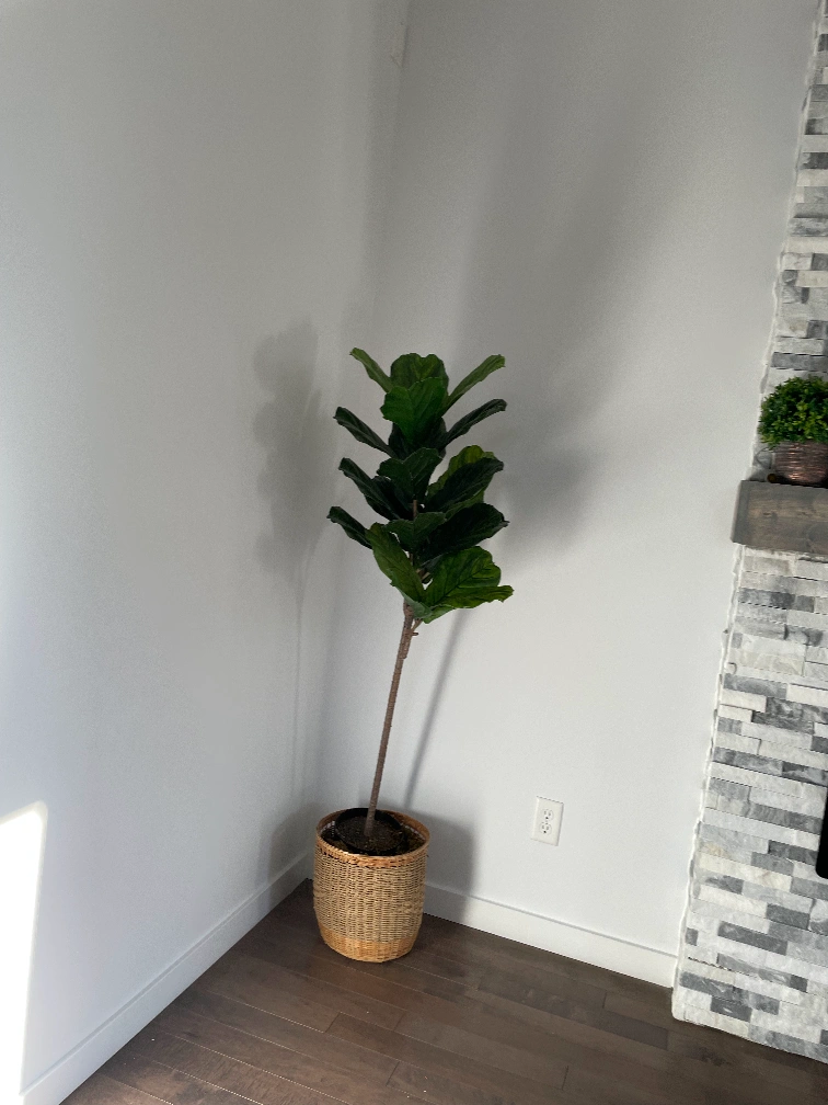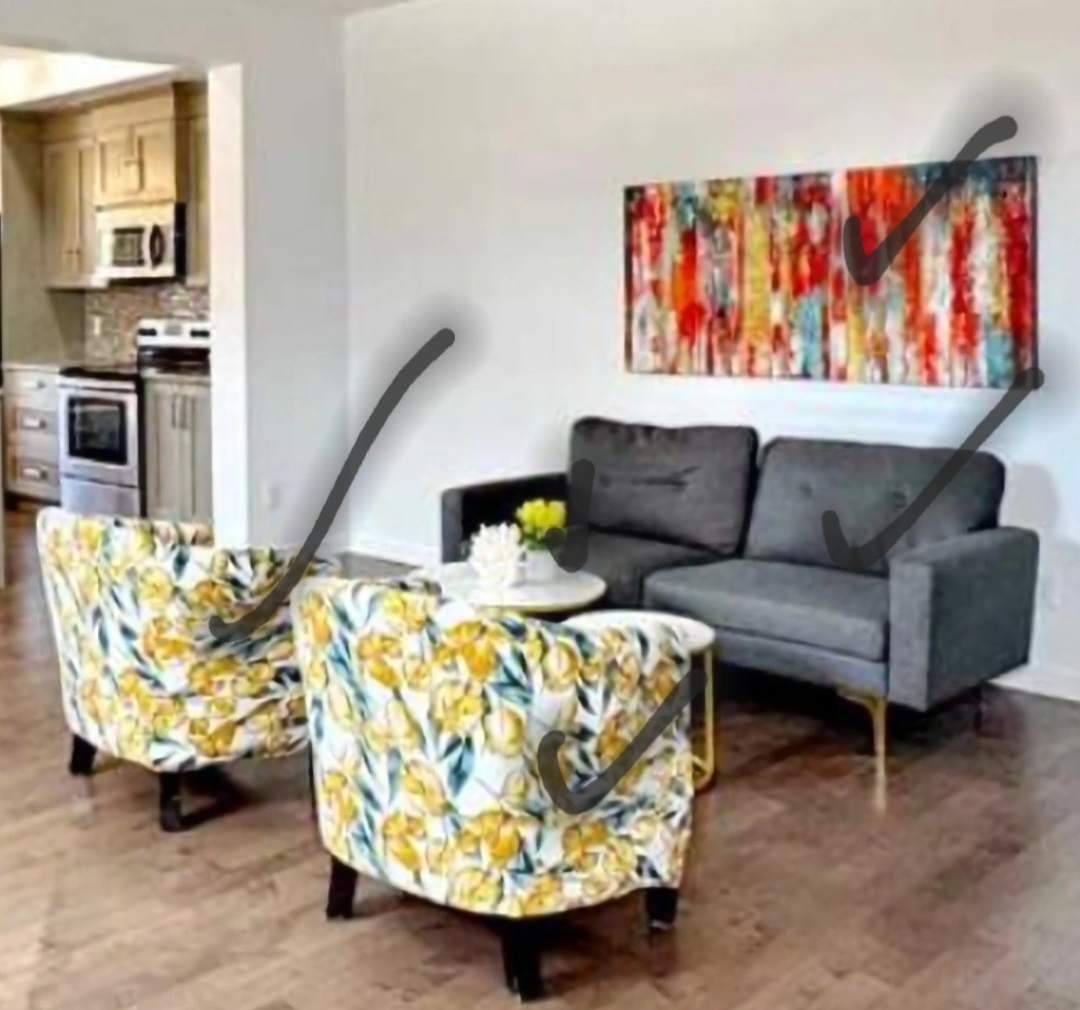 10selling as a set - 1 sofa (in good condition) 2 accent chairs ( inside is a brown leather in good condition but covered with yellow accent cover chair , 1 white tall vase with flowers, 1 big canvass frame, 1 small canvass artwork, coffee table, fake fig tree , 1 fruit bowl,