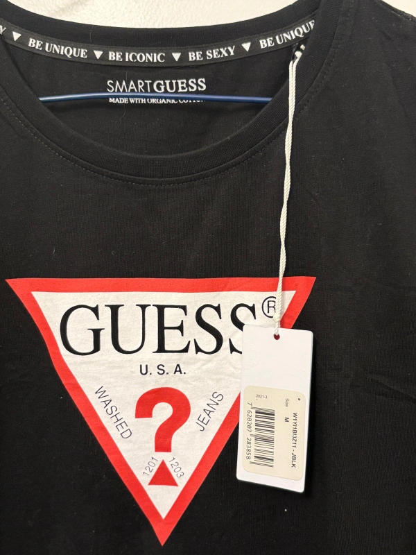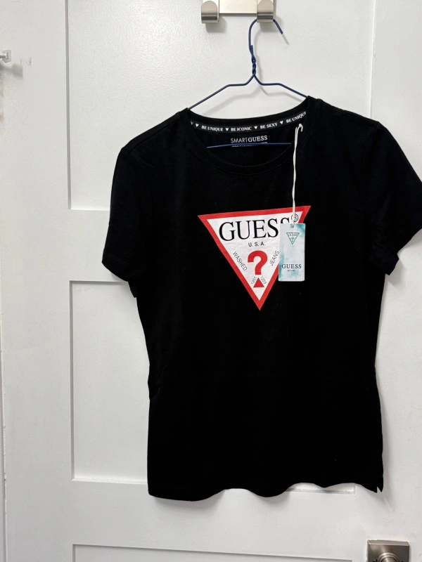 Brand new with tags. Guess black t-shirt in size medium. It features the iconic Guess logo on the front. Organic cotton.
