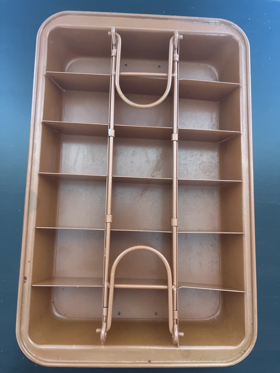 I am planning to post 29 free items on please check them out Here's a vintage brownie pan with a divider! It's in good condition and ready for your next baking project. The divider makes it easy to create perfectly portioned brownies or other treats. It's a unique piece for any baker!