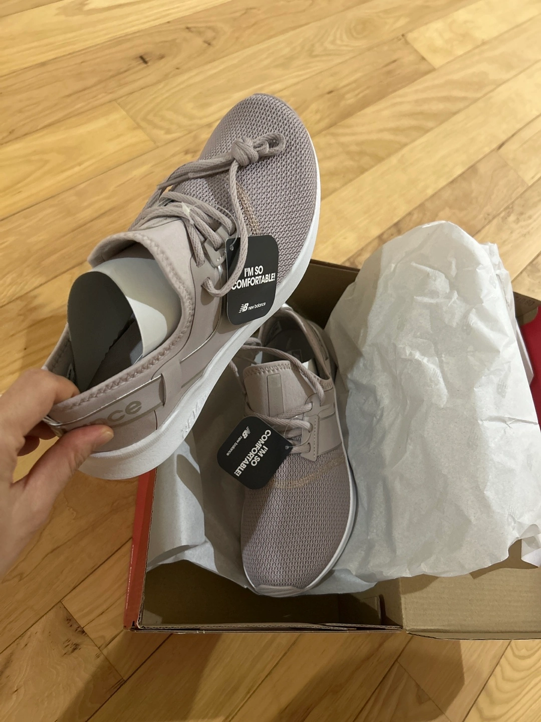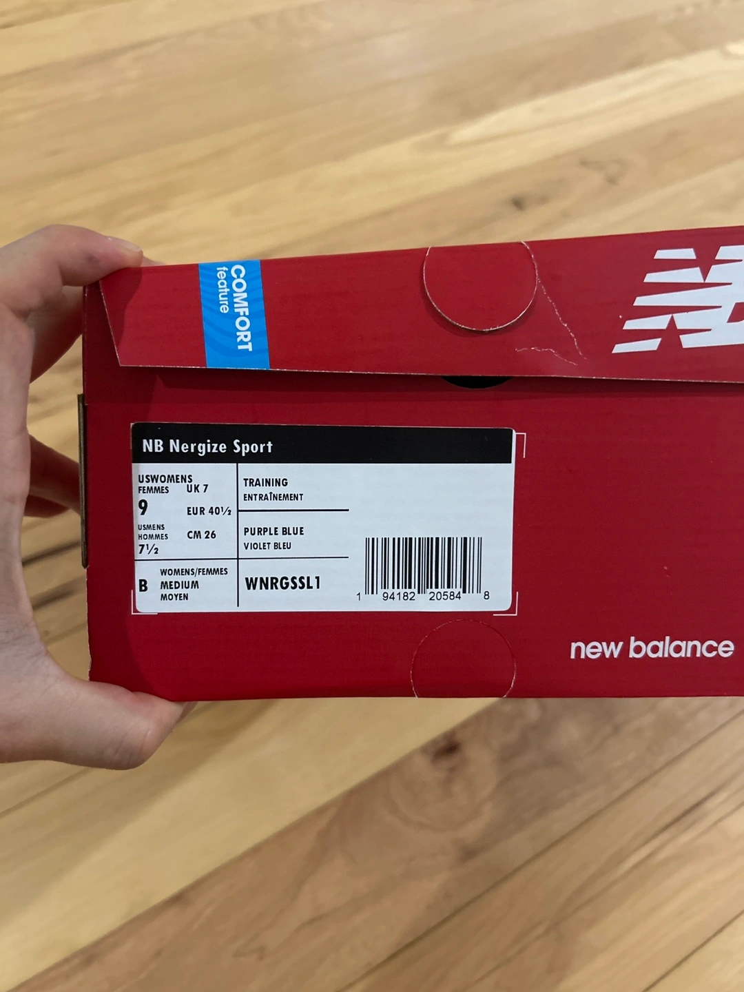 These New Balance Nergize Sport sneakers are in new condition and come in the original box! They're a women's size 9 and the color is listed as Purple Blue. They are super comfortable and ready for a new home!