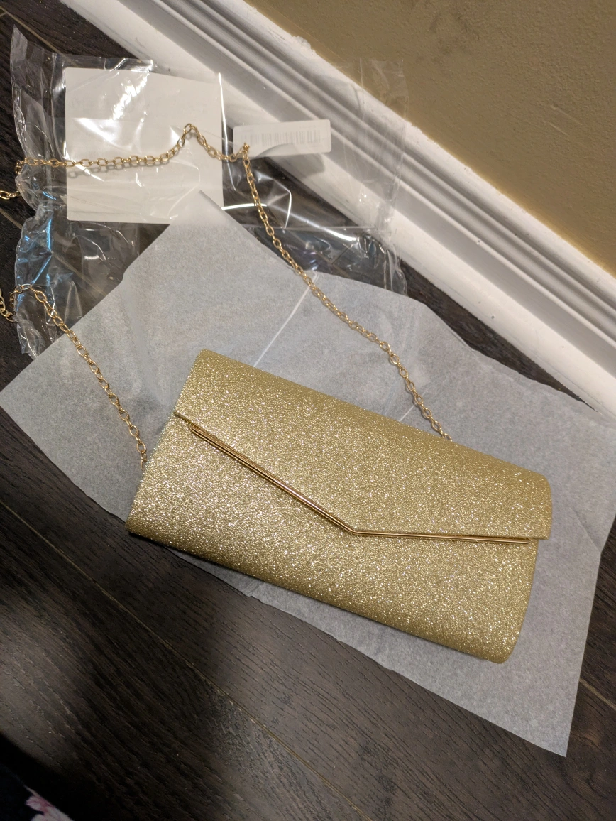 Brand new gold glitter small evening party bag