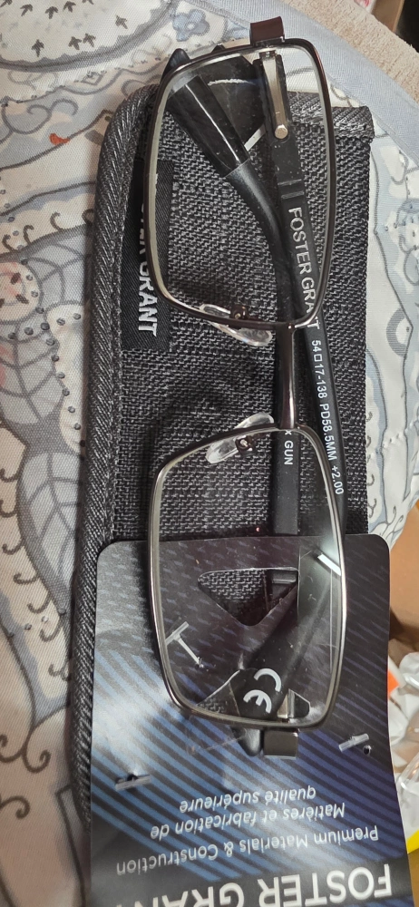 Foster Grant Knox gun metal reading glasses with a magnification of +2.00. These glasses come with a case. Originally bought for $29.99