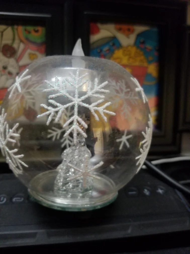 Add a touch of winter charm to your home with this decorative snowflake globe! Inside, there's a small LED Christmas tree that lights up, creating a cozy and festive atmosphere. Perfect for a shelf or table centerpiece during the holidays