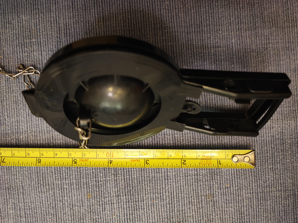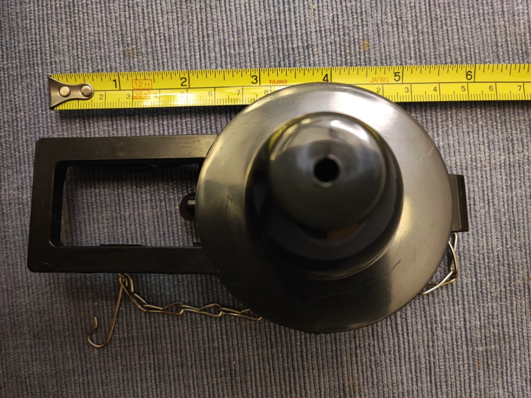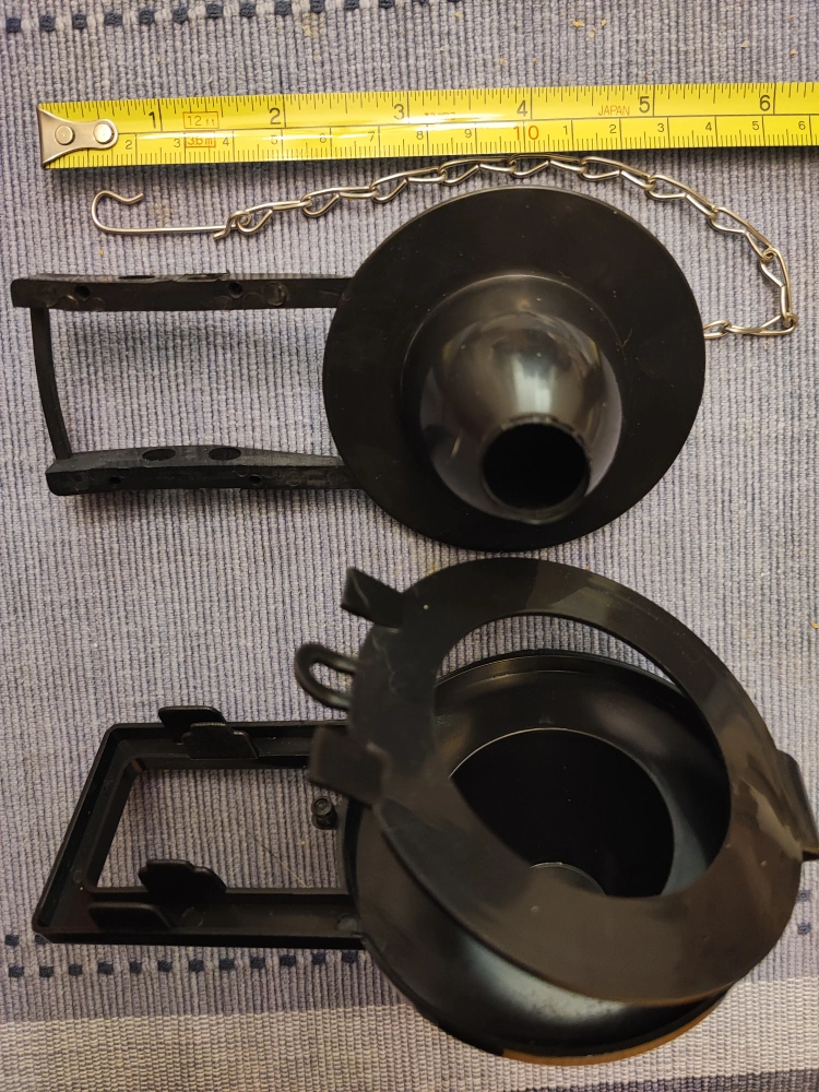 Selling a used toilet flapper. It appears to be in good condition and comes with the chain. A tape measure in the photos helps show the size.