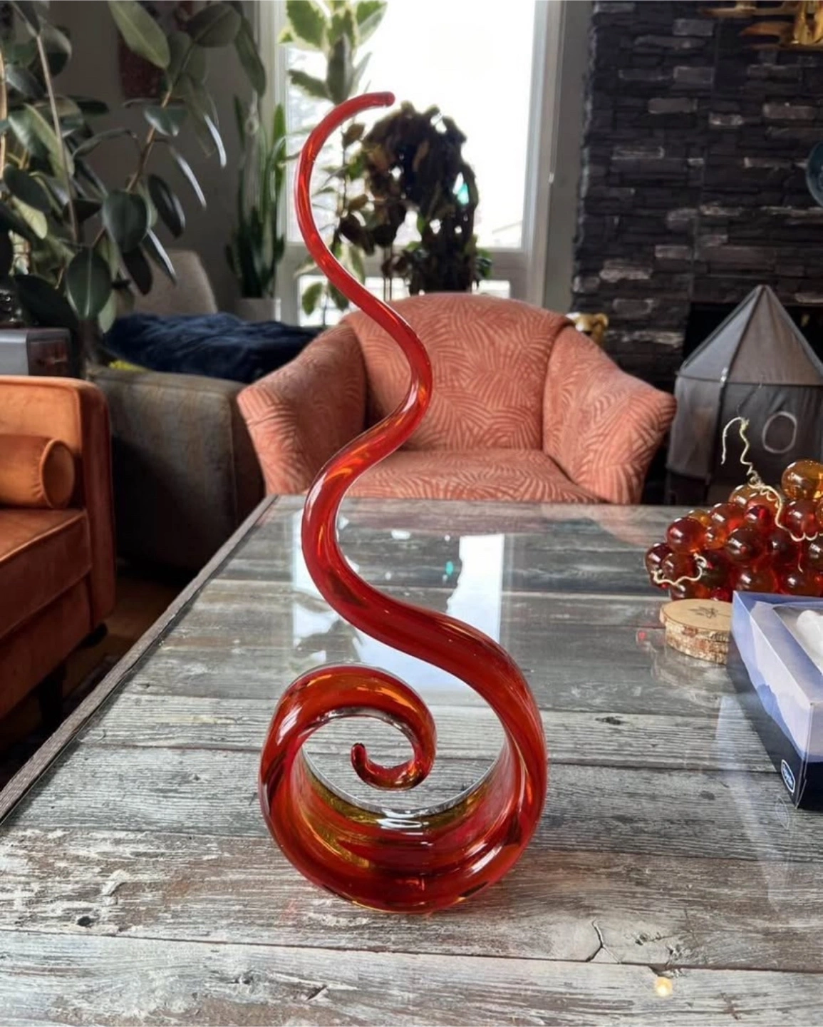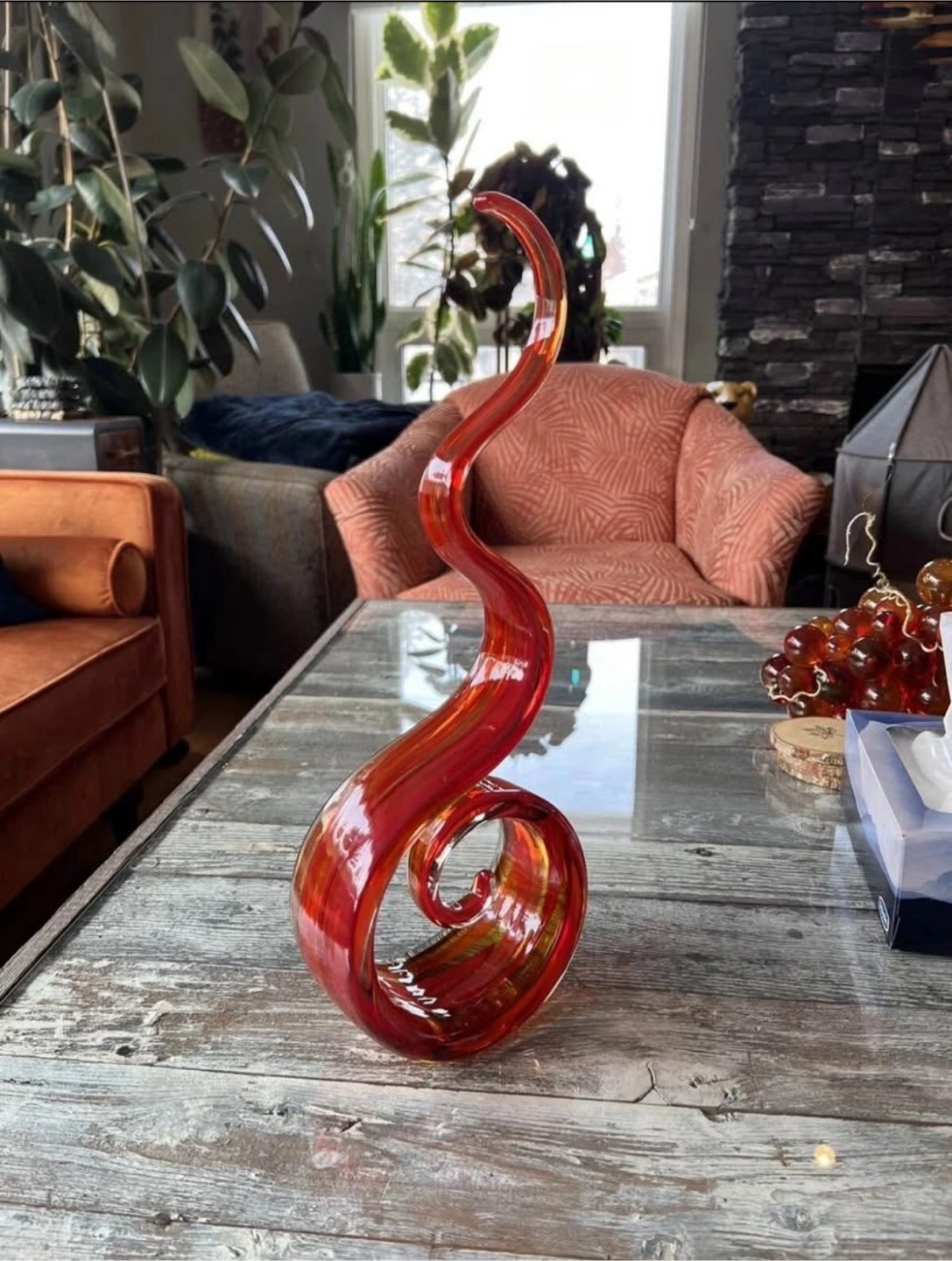 Murano Glass Spiral Sculpture Retro Red Mid Century Modern