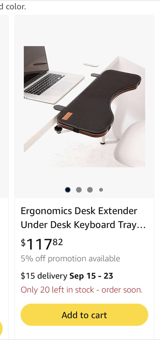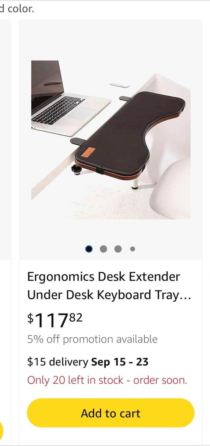 In great condition, I'm selling an Ergonomics Desk Extender Under Desk Keyboard Tray. It's in great condition and ready to use! Originally bought for $117.82, this desk extender is a fantastic addition to any workspace. It's designed to improve your ergonomics and make working at your desk more comfortable