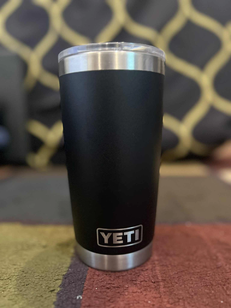 Selling a YETI 20 oz tumbler in black. It's in great shape and ready for your favourite hot or cold drinks! Perfect for keeping your beverages at the right temperature, whether you're on the go or just relaxing at home