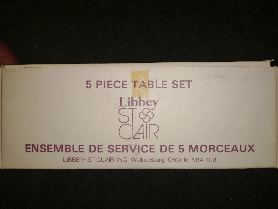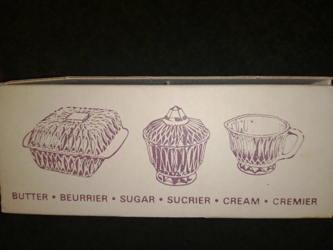 It's a classic design and includes pieces for butter, sugar, and cream. New and unused. Circa 1980s. Classic vintage charm.