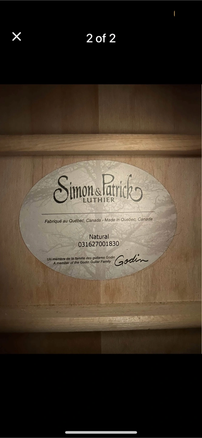 Selling a Simon & Patrick acoustic guitar with a beautiful natural finish. It's made in Quebec, Canada. This guitar is part of the Godin family of guitars. It's in great shape and ready for a new home! It’s $300 new from Long and McQuade. Pickup is near College and Bathurst.