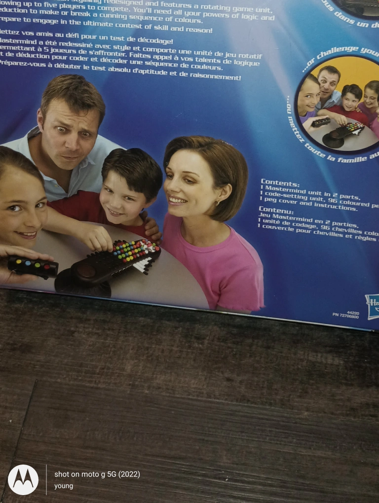 Get ready for some classic head-to-head fun with the Mastermind game! Challenge your friends and family to a battle of wits with this code-cracking game. It's designed for up to 5 players and features a rotating game unit. The box includes the Mastermind unit in 2 parts, a coding unit, 96 coloured pegs, and instructions