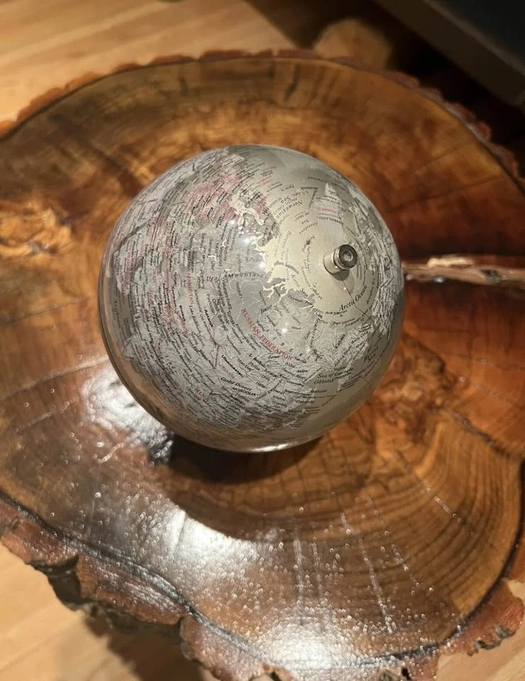 Unique small all-silver desk globe, in perfect condition. Pick up near Southcentre mall