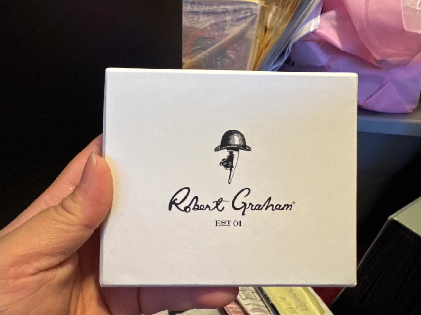 Selling a Robert Graham card holder in brown leather! It comes with the original box. Great for keeping your cards organized and adding a touch of style to your everyday carry Located in Douglasdale