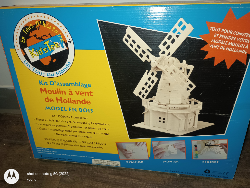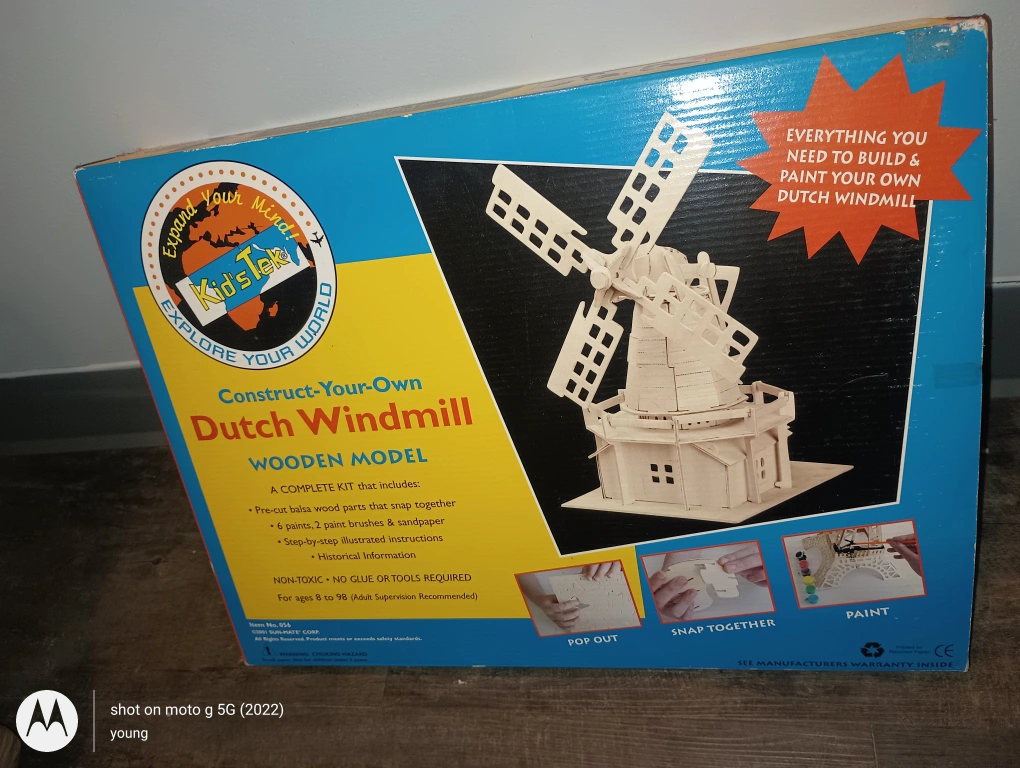 Get ready to expand your mind with this Construct-Your-Own Dutch Windmill wooden model kit from Kids Tek! It's a complete kit that includes pre-cut balsa wood parts that snap together, 6 paints, 2 paint brushes, and sandpaper. The kit also includes step-by-step illustrated instructions and historical information. Non-toxic and no glue or tools are required. Recommended for ages 8 to 98 (adult supervision recommended)