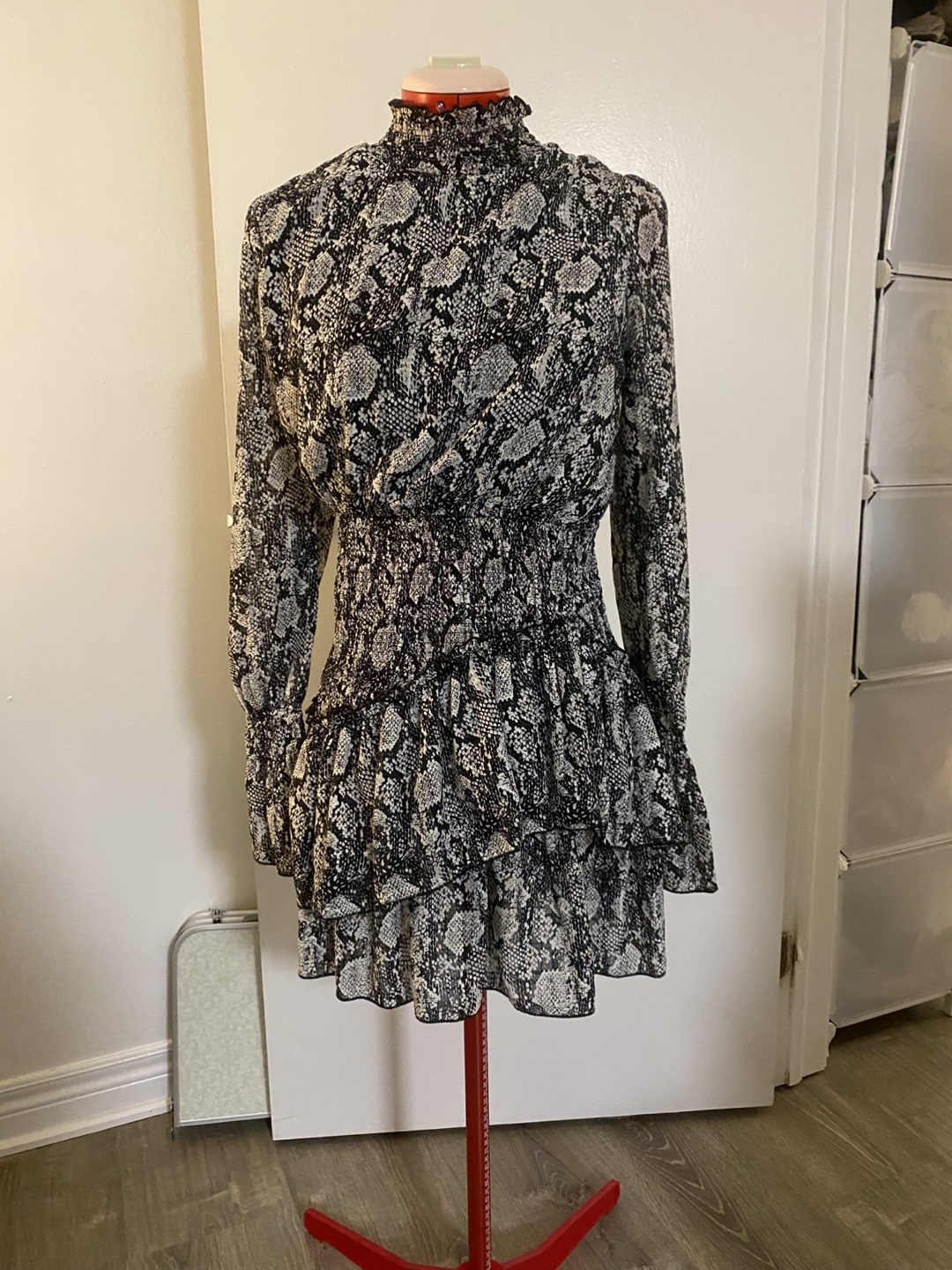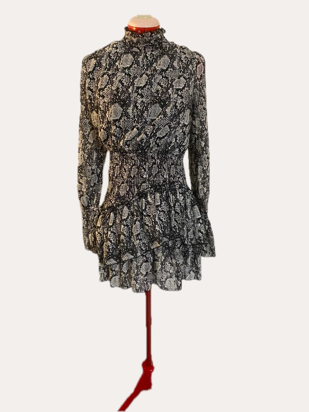 This dress from INTHEBEGINNING Los Angeles features a stylish design. It's a size large and would be a great addition to your wardrobe! It snatches your waist like crazzzyy. I bought it from a store called honey here in Toronto. Only wore it a few times but it’s so flattering and could be summery or Wintery