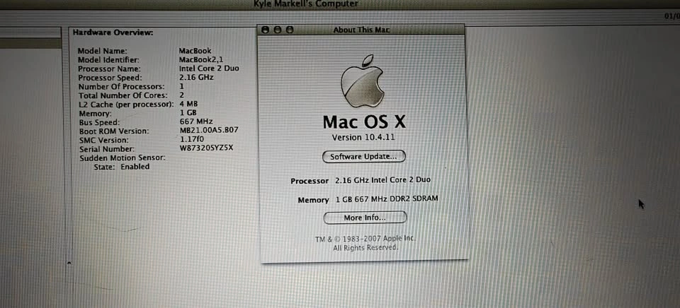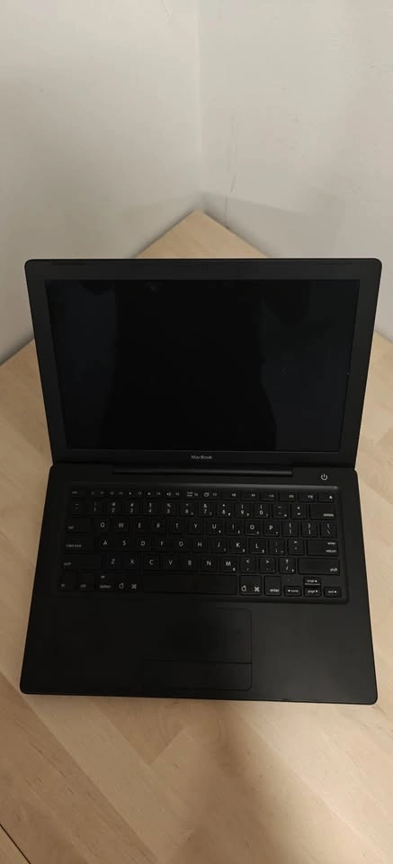 For sale: An original first-generation Apple MacBook in good, used condition. This MacBook features a 13.3" display, Intel Core Duo processor, up to 2GB RAM, 60–80GB HDD, Mac OS X pre-installed, and a built-in iSight camera. The body is sleek black polycarbonate. Has been factory reset for user convenience. a great opportunity for anyone looking for a functional vintage MacBook or a classic collector’s item.