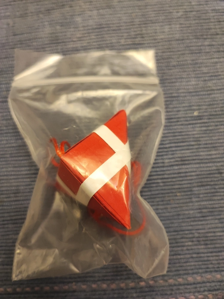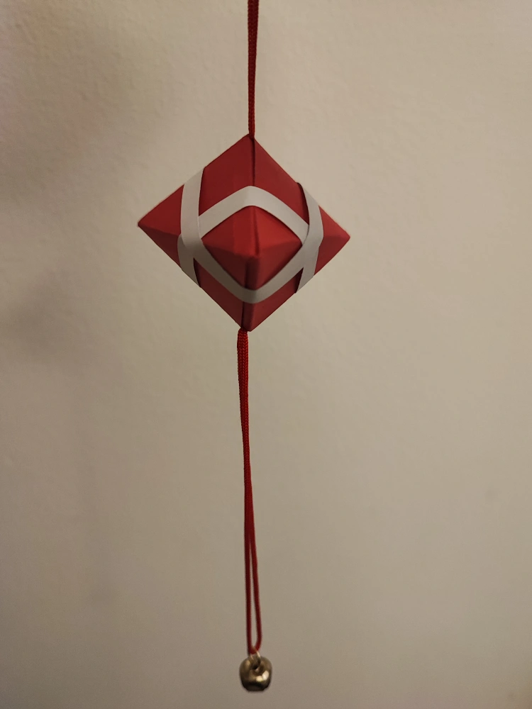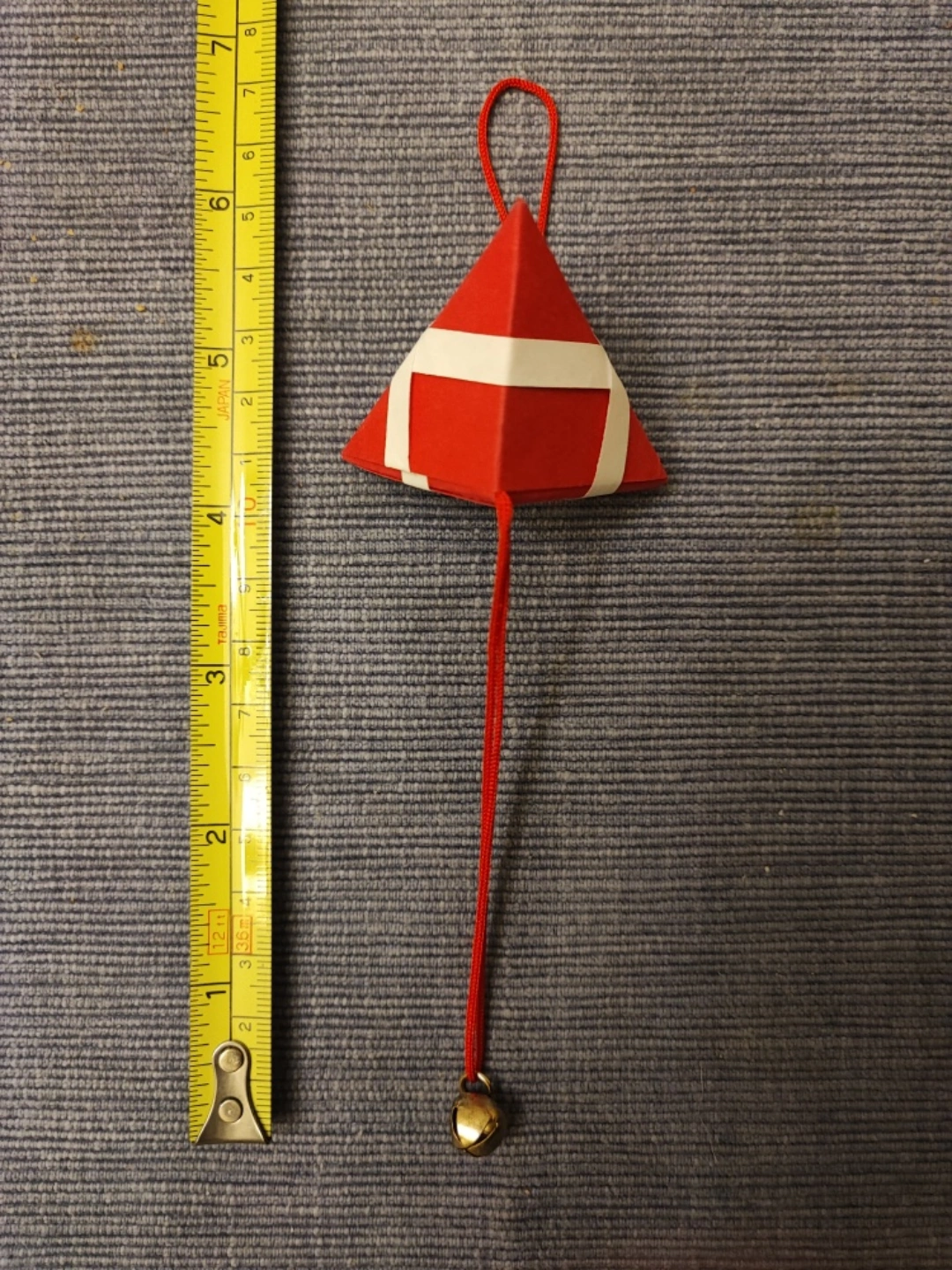 Here's a cute little Danish Christmas ornament! It's red and white with a small bell at the bottom. It measures about 3 inches in length. It is in great condition and comes in its original packaging *Pick up only