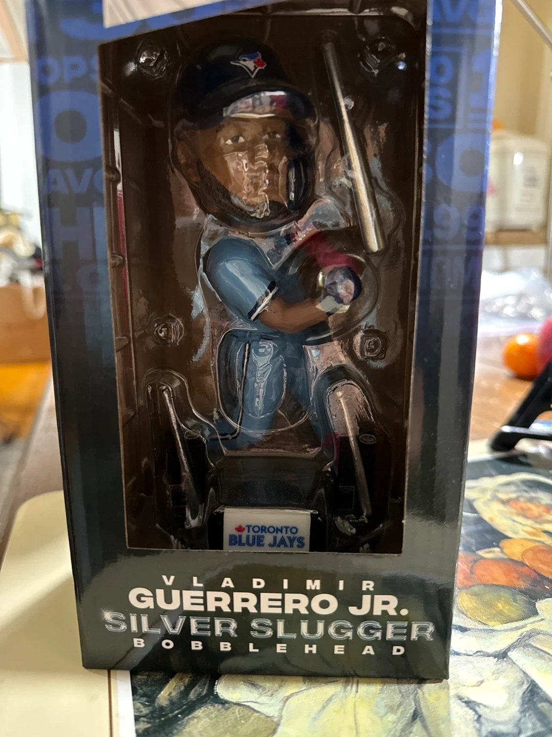 Selling a Vladimir Guerrero Jr. Silver Slugger bobblehead. It comes in the original box. This is a great collectible item for any Blue Jays fan!