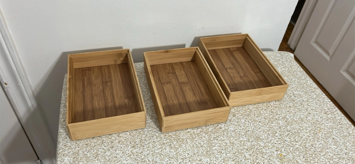 Here are some simple bamboo storage boxes. They're great for organizing your space and adding a touch of natural warmth to any room. Perfect for decluttering your desk, shelves, or drawers!