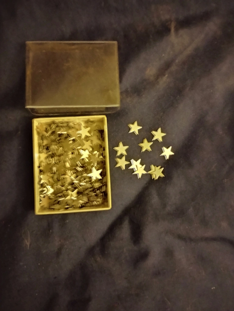 161NEW!! METAL CONFETTI STARS. NEVER USED, BEEN IN STORAGE. NO IDEA OF HOW MANY, PROBABLY A COUPLE HUNDRED.