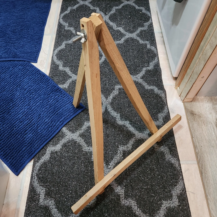 Selling a wooden easel. It's in great shape and perfect for artists of all levels! It's sturdy and adjustable, making it easy to work on projects of different sizes. Great for painting or displaying artwork