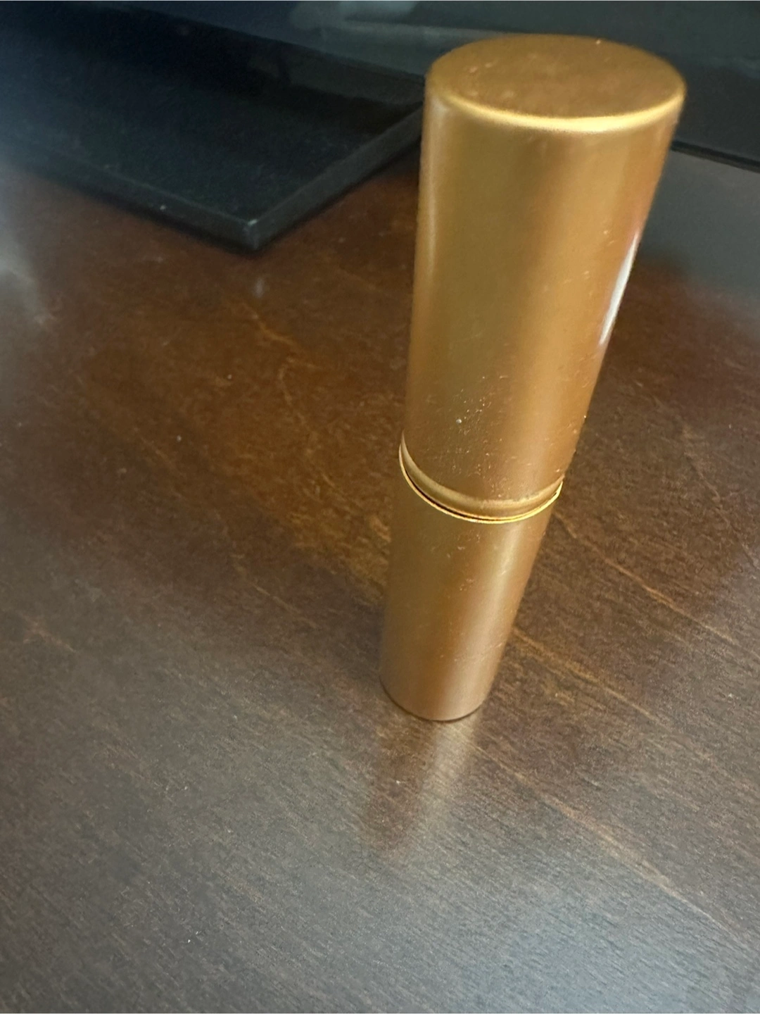 Gold color Fits in your palm. good for on the go or if you want a brush set that doesn’t take up space