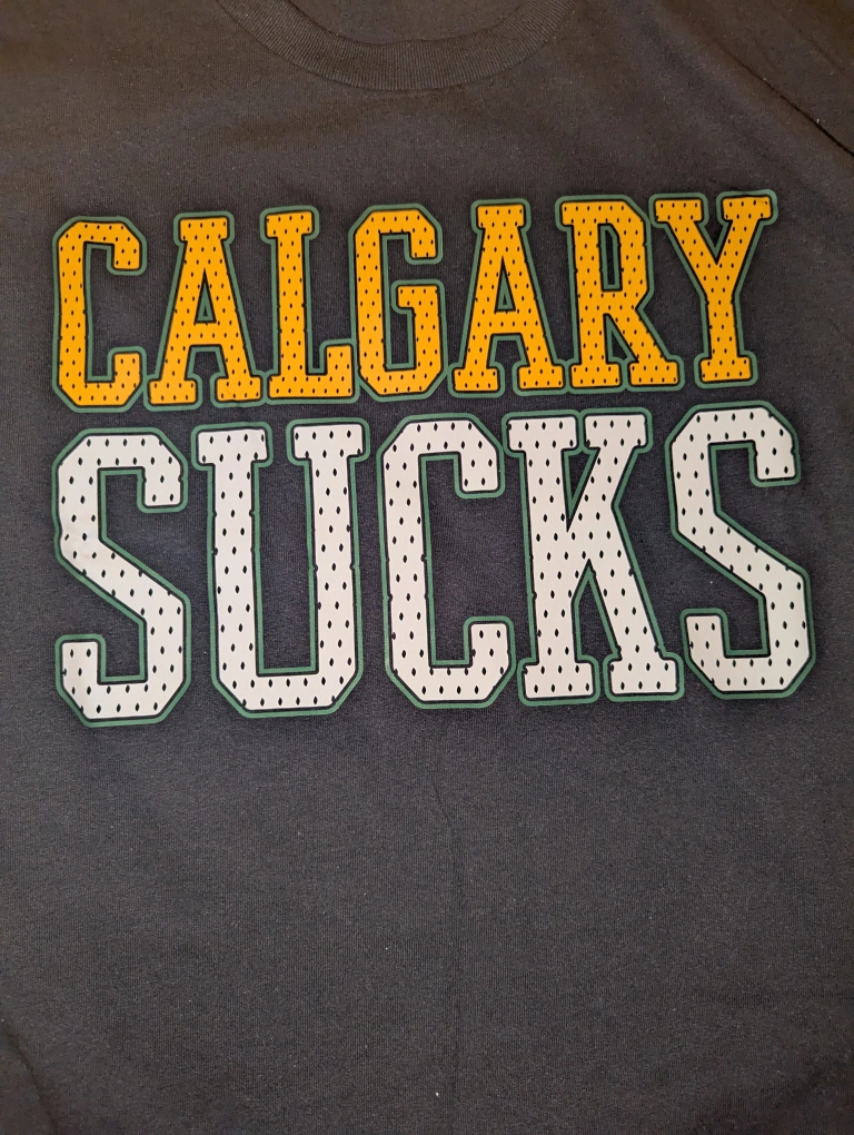 Perfect for tailgates, stadium stands, or trash-talking your buddies from Calgary, this shirt is built for fans who aren’t afraid to go all-in on the rivalry.