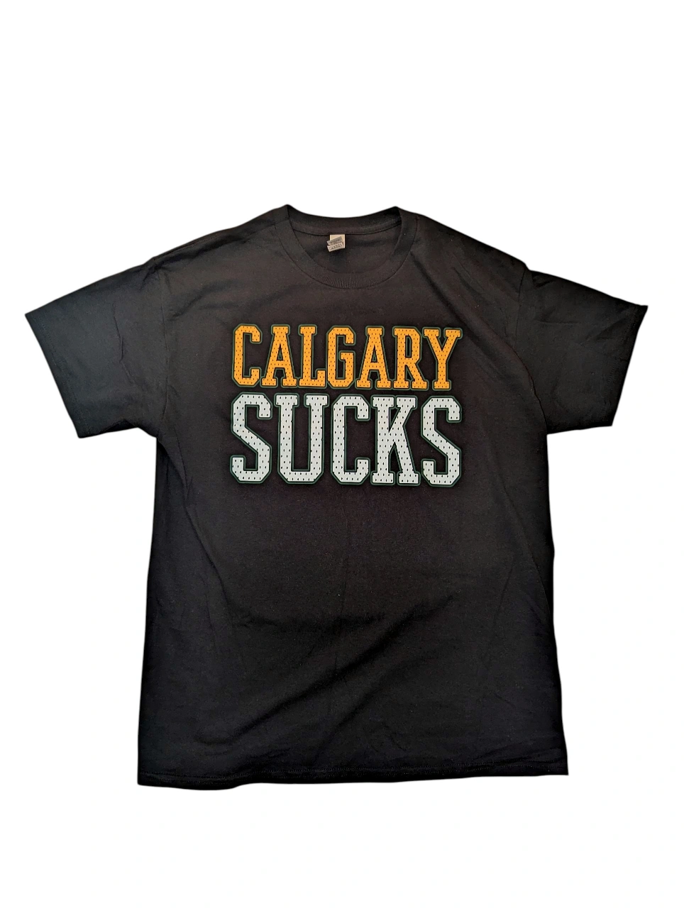 Fuel the rivalry in style! This “Calgary Sucks” T-shirt is a must-have for every diehard Edmonton fan looking to bring the heat when the Elks face off against the Stampeders. Made with high-quality cotton, this bold black tee features loud, unapologetic lettering that makes your game day loyalty crystal clear.
