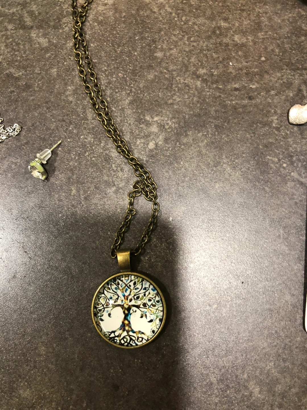 Selling a lovely pendant necklace featuring a Tree of Life design. It has an antique bronze finish and a unique, eye-catching pendant. Perfect for adding a touch of nature-inspired style to any outfit!