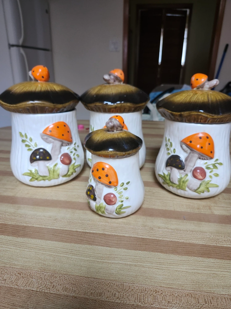 Selling a vintage set of Merry Mushroom canisters. They're in great condition and would look adorable in any kitchen!