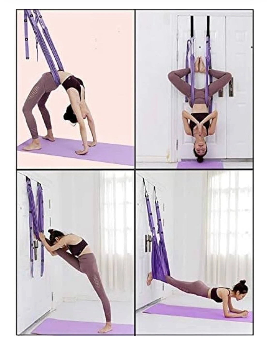 Get ready to stretch and relax with this pink aerial yoga hammock swing! It comes with adjustable multilayer straps and a high-quality door anchor for easy setup. Perfect for anti-gravity inversion exercises and improving flexibility. It also has a strong strap